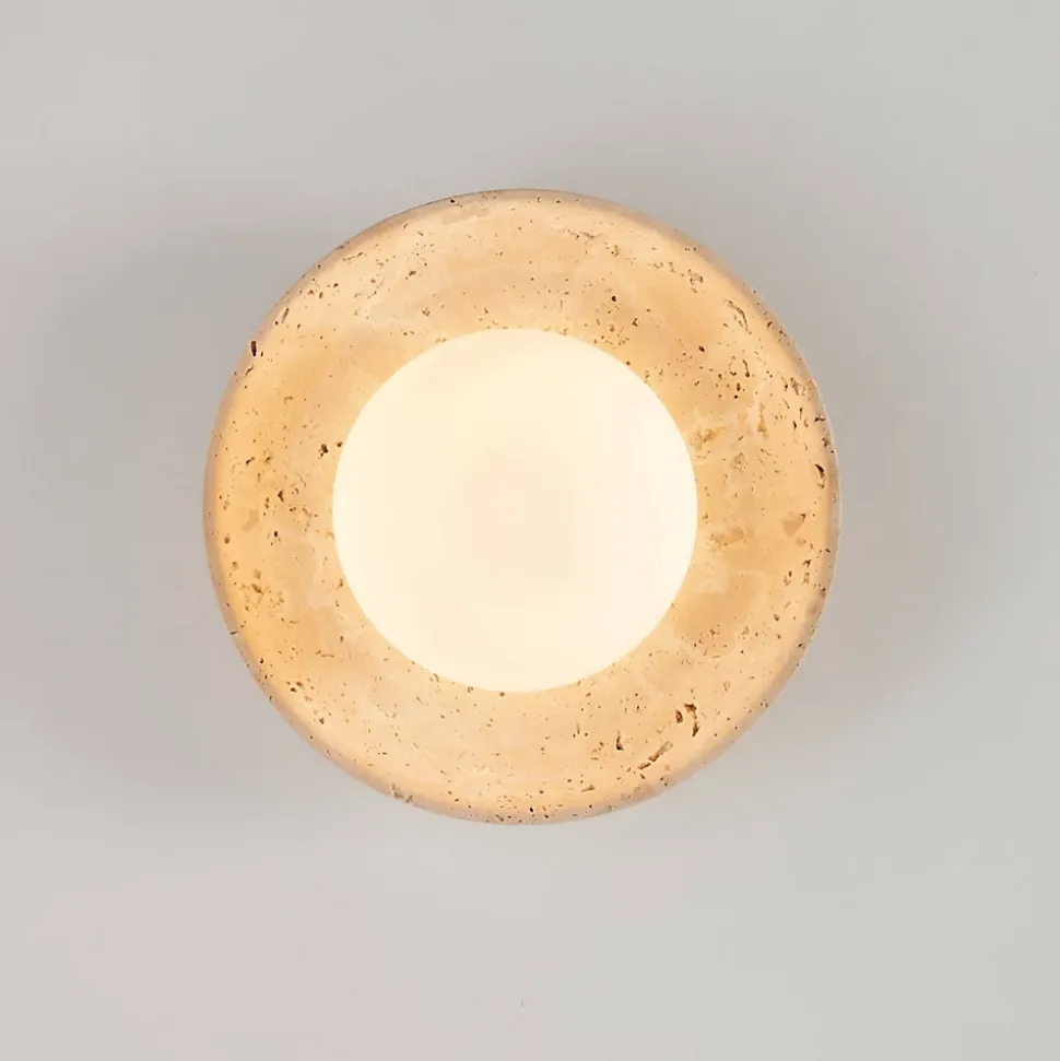 Le plafonnier Jio, d’un diamètre de 25 cm, se distingue par son plateau en pierre beige clair, son socle en bois, et son abat-jour en verre blanc. Avec son style à la fois vintage et moderne, il associe des matériaux naturels de qualité irréprochable. Il suffit d’ajouter une ampoule G9 (non incluse) pour bénéficier de son éclairage, avec une diffusion homogène grâce à son abat-jour en verre.) Assemblage simple requis (