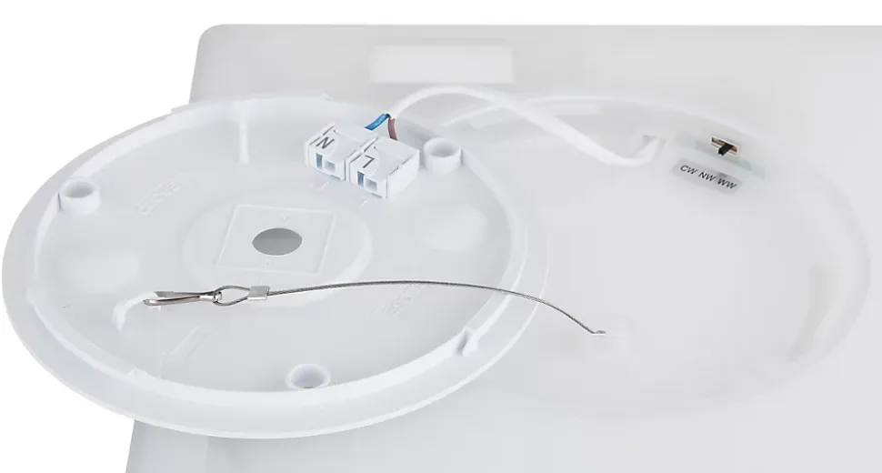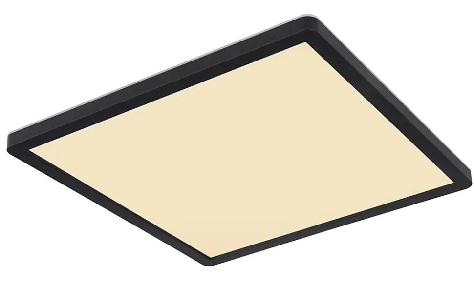 Plafonnier plastique noir, plastique satiné, plastique opale, blanc, Plusieurs intensités à gérer par un interrupteur mural, Rétroéclairage, Fonction de mémoire, IP44, LxPxH: 294x294x25mm, incl. LED 18W 230V, 2100lm Source, 1500lm Output, 3000K