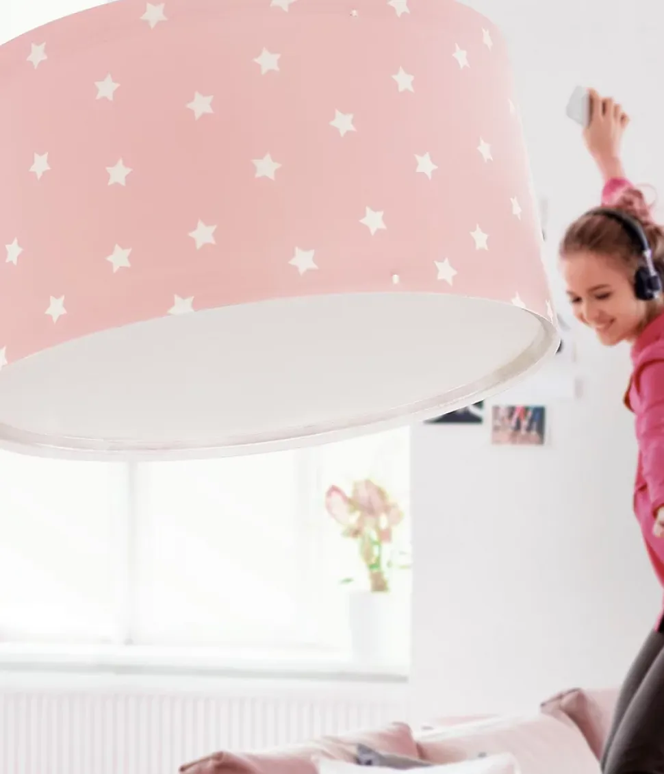 Plafonnier rose à 2 lumières avec imprimé étoile fluorescent, ils sont la combinaison parfaite pour éclairer et décorer la pièce avec un style moderne.