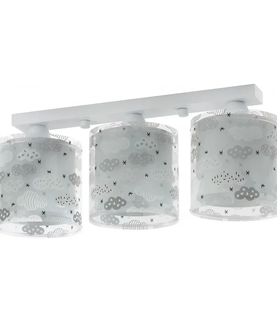 Plafonnier pour bebe Clouds gris Le plafonnier pour bebe de la collection Clouds décorera le plafond de la chambre de nuages originaux. Si vous avez besoin d’un éclairage supplémentaire dans la chambre de votre bebe, le plafonnier pour enfants à trois lumières est parfait.installer le plafonnier enfant directement au plafond.permet d’obtenir un éclairage uniforme dans toute la pièce, sans ombres.le plafonnier pour enfants a un double écran en polypropylène transparent.Vous pouvez combiner le plafonnier avec le reste des lampes de la collection Clouds pour obtenir un ensemble original dans la chambre des enfants