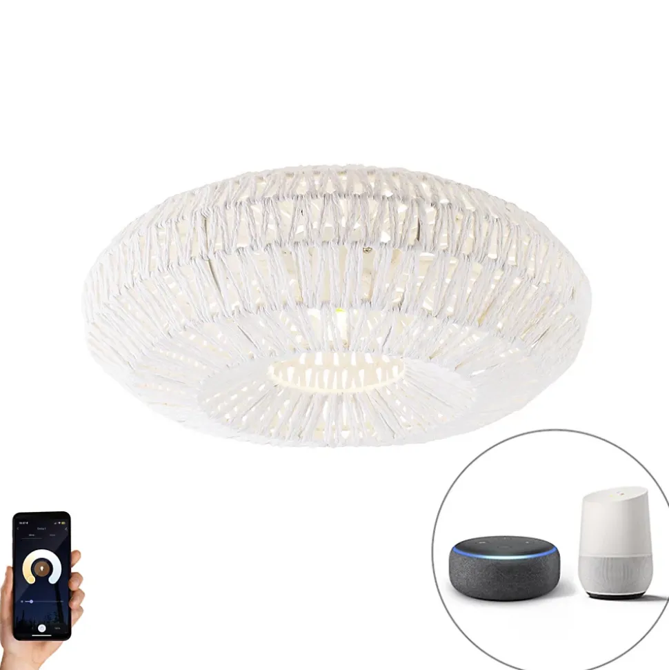 Le plafonnier Lina trouvera parfaitement sa place dans un intérieur rétro. Fabriqué en corde et fini en blanc, il a un diamètre de 50 cm et une hauteur de 19 cm. Avec un maximum de 806 lumens, ce plafonnier est un véritable concentré de puissance ! Plus besoin de vous lever du canapé, car Lina est également intelligent et peut être commandé à distance avec votre smartphone ou votre système de maison intelligente. Ne restez plus dans le noir et optez pour Lina.