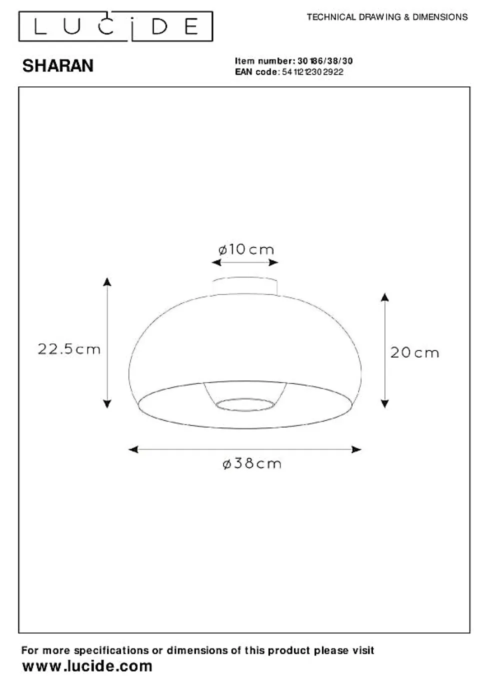 Envie d’un peu de nostalgie ? Alors, Sharan est fait pour vous. Ce plafonnier est plutôt imposant avec son diamètre de 38 centimètres et sa hauteur d’un peu plus de 22 centimètres. Sa demi-sphère lisse à l’extérieur présente un intérieur métallique. L’ampoule elle-même est enveloppée dans un écrin de verre fumé renversé. Sharan ne manque pas d’attirer les regards au-dessus d’une l’armoire murale, d’un comptoir ou d’un bar. Grâce à sa forme ajourée, la source lumineuse à filament s’exprime librement. Créez l’ambiance idéale en connectant le luminaire à un dimmer externe.Caractéristiques uniques:• Utilisable avec une source lumineuse LED• Facile à connecter à un variateur (non fourni)• Fabriqué en acierPrincipales caractéristiques du produit:• Consommation énergétique: 1x60W / 230V / A intensité variable (Ampoule non incluse)• Dimensions: Ø38 cm Haut.22,5 cm• 2 Ans garantie sur le luminaire / source de lumière appropriée est EAN: 5411212491152Pourquoi choisir l’éclairage Lucide?Lucide incarne un design innovant, un savoir-faire artisanal et une fiabilité exemplaire. En tant qu’entreprise familiale belge avec plus de trois décennies d’expertise, nous concevons des éclairages de haute qualité qui enrichissent et transforment chaque espace, tant intérieur qu’extérieur. Notre collection polyvalente comprend des luminaires durables et des sources lumineuses économes en énergie, soigneusement conçus par nos propres experts et fabriqués selon les normes CE les plus strictes. Grâce à notre large gamme, nous vous proposons toujours une solution d’éclairage adaptée, quel que soit le style ou l’espace. Ainsi, nous illuminons non seulement votre espace de vie mais aussi votre processus de choix dans la recherche d’un éclairage de qualité et abordable. Chez Lucide, nous combinons innovation et savoir-faire pour un éclairage qui ajoute non seulement de l’ambiance, mais transforme chaque maison en foyer.