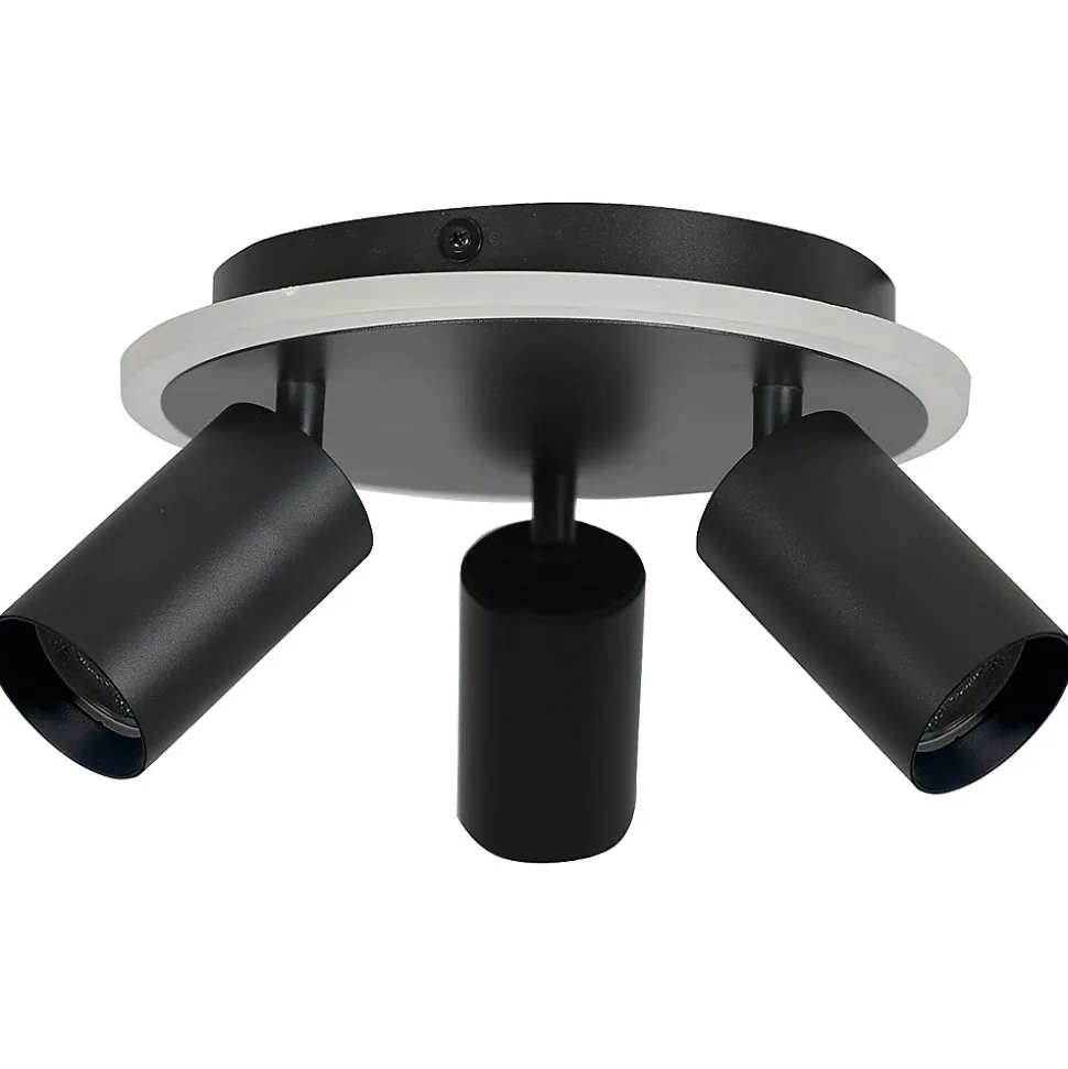 Le plafonnier Parma 3 est un luminaire moderne qui combine design minimaliste et éclairage fonctionnel. Sa finition noire élégante et sa forme ronde en font un choix idéal pour les intérieurs contemporains.Ce plafonnier est équipé de trois spots orientables GU10 qui permettent de diriger la lumière précisément vers les zones importantes de la pièce. Il est ainsi parfait pour éclairer un bureau, un plan de travail, une table ou un coin lecture.En complément des spots, le luminaire dispose également d’un éclairage LED intégré avec température de couleur réglable CCT 3000K – 4000K – 6000K. Cette fonction permet d’adapter l’ambiance lumineuse selon les besoins : lumière chaude pour un moment de détente, lumière neutre pour un éclairage quotidien ou lumière froide pour le travail.Avec son diamètre compact de 24 cm, ce plafonnier est idéal pour les pièces où l’espace est limité. Il convient parfaitement au salon, à la chambre, au couloir ou au bureau.Les anneaux décoratifs interchangeables noir ou doré permettent également de personnaliser le style du luminaire selon la décoration intérieure.