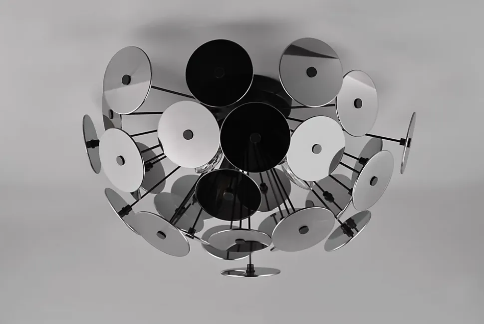 Les caractéristiques techniquesTransformez votre intérieur avec le plafonnier Discalgo, un luminaire au design saisissant inspiré par la nature. Avec sa forme évoquant un pissenlit, il crée un magnifique jeu d’ombres et de lumières, idéal pour le salon ou la chambre.Doté d’une structure en métal noir mat et d’abat-jour en verre chromé, ce plafonnier de 54 cm de diamètre et 30 cm de hauteur s’intègre harmonieusement dans des décors modernes et créatifs. Conçu pour trois ampoules E14 (max. 40W, non incluses), il offre un éclairage à la fois élégant et fonctionnel.Pour un rendement optimal et des économies d’énergie allant jusqu’à 80 %, nous recommandons l’utilisation d’ampoules LED.Les avantages esthétiquesLe plafonnier DISCALGO de TRIO séduit par son esthétique originale : les reflets chromés du verre contrastent avec le métal noir pour un résultat à la fois chic et spectaculaire. Son style aérien apporte une touche artistique à n’importe quelle pièce, offrant une lumière diffuse qui sublime vos espaces.Simple à installer au plafond (IP20), ce luminaire est parfait pour ceux qui recherchent un éclairage qui ne passe pas inaperçu tout en restant fonctionnel et durable.