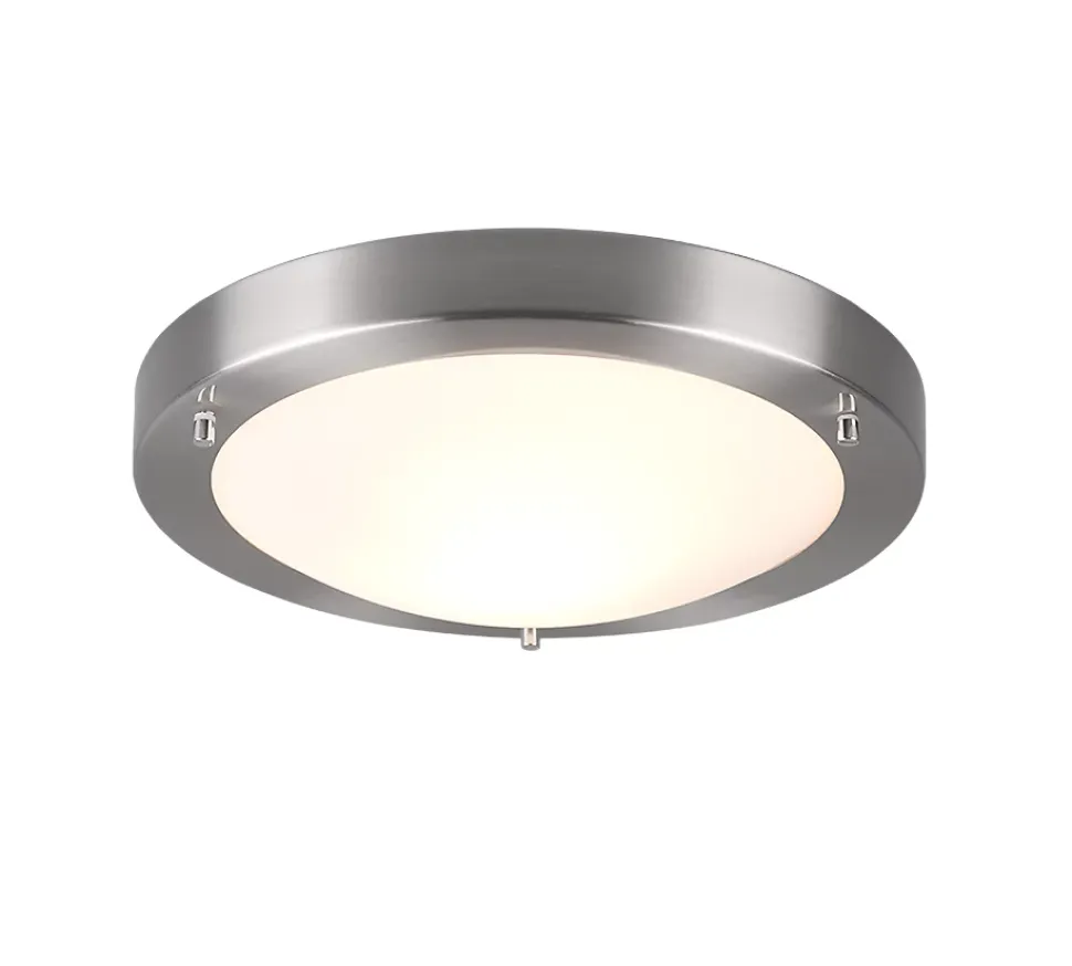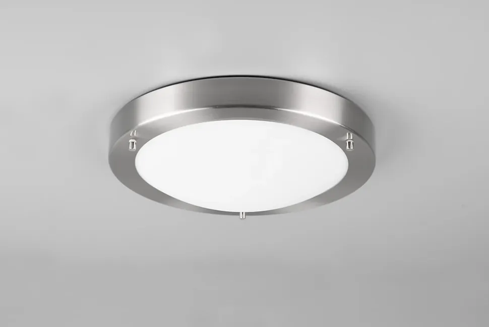 Les caractéristiques techniquesLe plafonnier CONDUS TRIO, avec son design moderne et fonctionnel, est idéal pour une installation dans des environnements tels que les salles de bains ou les zones extérieures protégées contre les éclaboussures, grâce à son indice de protection IP44. Avec un diamètre de 31 cm et une hauteur de 8 cm, il s’intègre harmonieusement dans différents styles d’aménagement.Le plafonnier combine un corps en métal nickel mat et un verre opale blanc, créant une lumière douce et diffuse qui s’adapte parfaitement à tous les types d’espace. Son installation au plafond en fait une solution d’éclairage efficace et élégante.Fonctionnalités et avantagesLe plafonnier CONDUS est une solution idéale pour ceux qui recherchent un éclairage fiable dans des environnements humides ou extérieurs protégés. Sa conception en métal nickel mat et en verre opale blanc lui permet de s’intégrer facilement dans divers décors, tout en offrant une lumière agréable et uniforme.Recommandé pour une utilisation avec des ampoules LED, ce plafonnier permet de réaliser des économies d’énergie considérables, avec des économies pouvant atteindre jusqu’à 80% par rapport aux ampoules halogènes traditionnelles. De plus, il assure une longue durée de vie et une faible production de chaleur, contribuant ainsi à la protection de l’environnement.