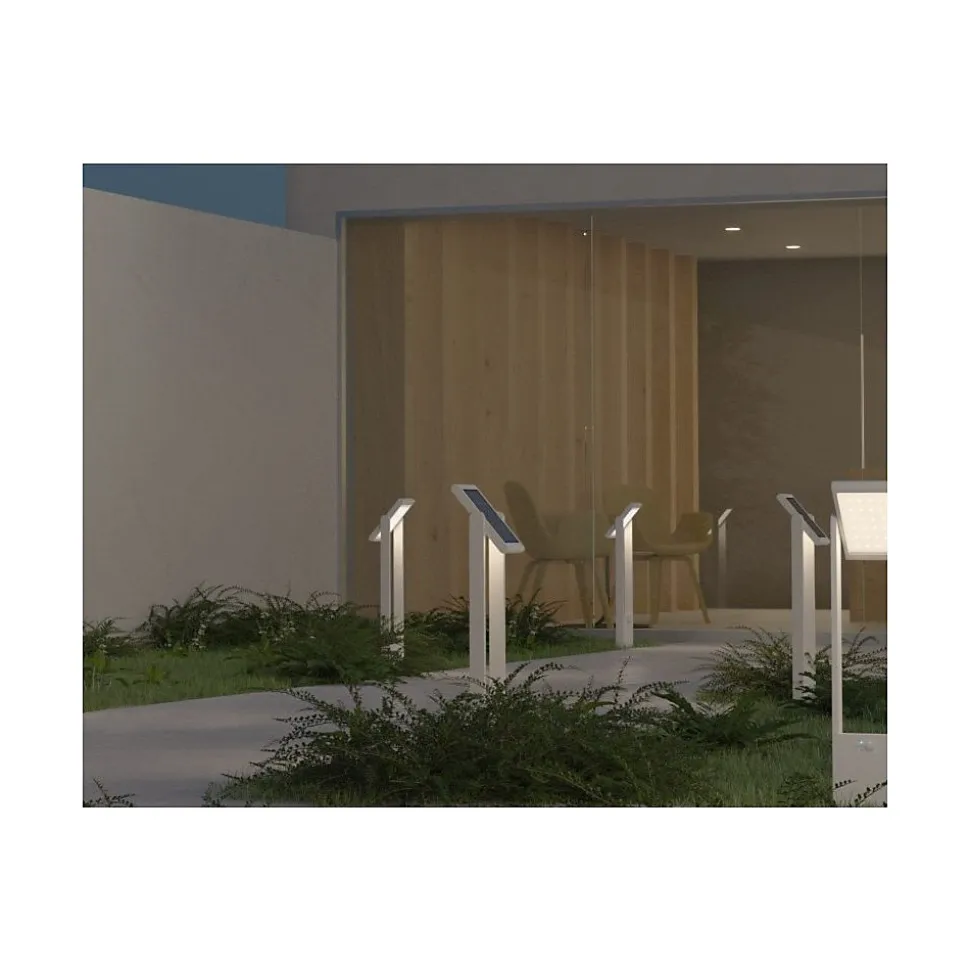 Popa est un spot solaire LED de 60 cm de hauteur, idéal pour les installations extérieures grâce à sa résistance à l’eau et à la poussière (certification IP54).Adapté pour baliser des itinéraires, mettre en valeur des passages ou délimiter des espaces, Popa se recharge de manière autonome grâce à son panneau solaire rotatif situé sur le dessus. Avec une température de couleur de 4 000K et un angle d’émission lumineuse de 120º, Popa offre un éclairage d’ambiance et fonctionnel. La finition blanche s’intègre parfaitement dans n’importe quel environnement extérieur.Ce spot LED solaire de 1,6W est conçu pour être installé dans le jardin, offrant des solutions d’éclairage pour les espaces ouverts avec des touches de lumière qui mettent en valeur l’environnement. Popa est alimenté via le panneau solaire intégré, permettant une rotation jusqu’à 90° pour un éclairage personnalisé.Avec une température de couleur de 4000K et un angle d’émission lumineuse de 120º, Popa est disponible dans une finition blanche, parfaitement adaptable à l’environnement.Le spot solaire comprend un capteur de mouvement qui active la lampe en présence de mouvement et l’éteint après un intervalle de temps personnalisable par l’utilisateur (de 8 secondes à 8 minutes). De plus, il est équipé d’un capteur crépusculaire qui ajuste automatiquement l’intensité lumineuse en fonction de la lumière ambiante.Installable dans les espaces extérieurs exposés au soleil, Popa se charge pendant la journée pour éclairer l’environnement à la tombée de la nuit. Ce spot allie basse consommation d’énergie et design décoratif, élégant et discret, optimisant l’éclairage extérieur pour réduire votre impact énergétique.Ce spot LED avec panneau photovoltaïque intégré est adapté pour une utilisation dans des environnements où l’électricité n’arrive pas. Utile à l’extérieur pour éclairer de petites zones, des allées, des sentiers et des jardins