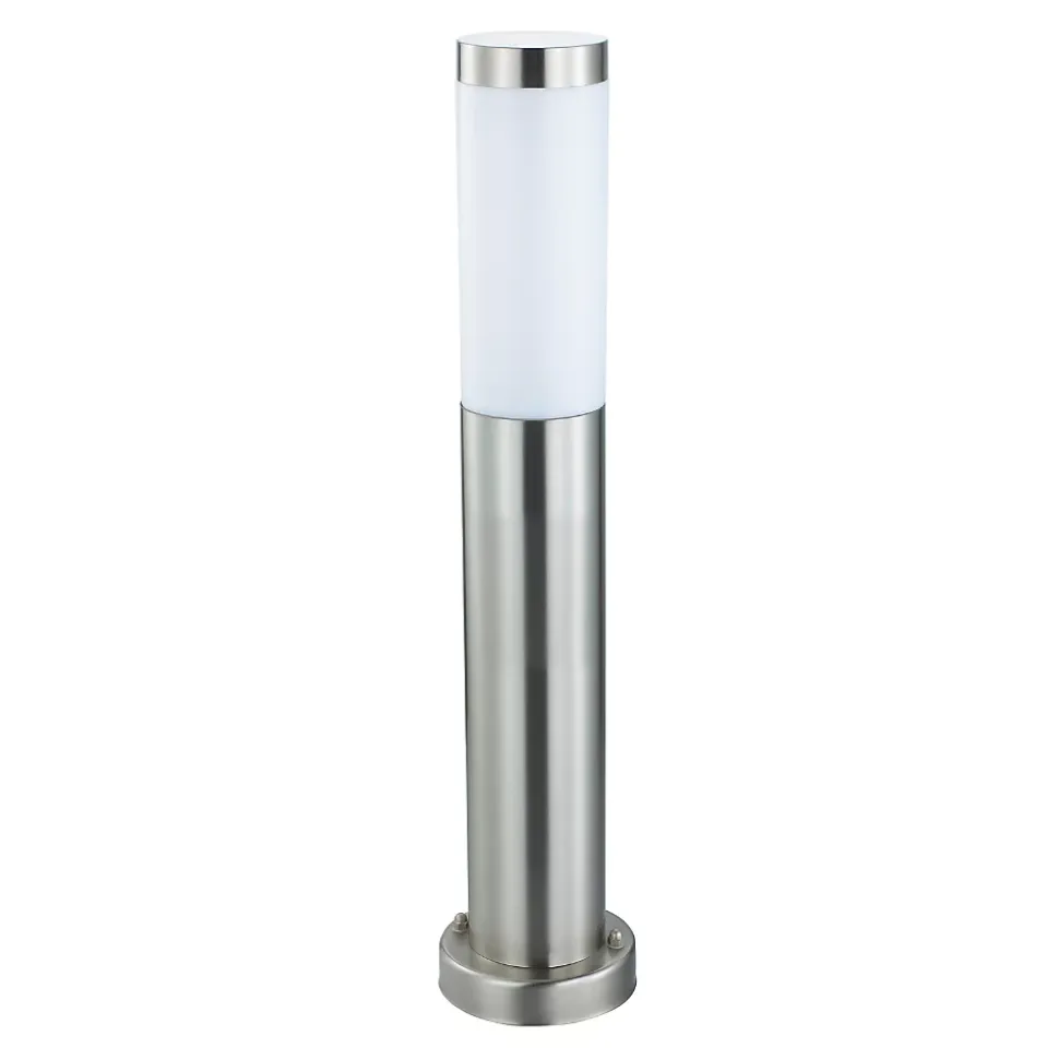 Le potelet Defne-4 Inox E27 60W permet d’éclairer et de sécuriser l’accès à votre habitation. Son corps est en acier inoxydable et son diffuseur en plastique (PC). Le diffuseur opale offre un éclairage à 360°. Muni d’une douille E27, le potelet Defne-4 inox E27 60W peut accueillir tous types d’ampoules LED équivalentes (puissance MAX 60W). La puissance Max indiquée sur les luminaires correspond à la puissance maximum consommée par l’ampoule et non pas la puissance restituée par l’ampoule. Vous pouvez par exemple installer une ampoule LED 8W équivalente à 60W. Les 8W correspondent à la puissance consommée et les 60W à la puissance restituée. Vous ferez donc plus de 80% d’économie d’énergie avec cette ampoule LED 8W tout ayant la même intensité qu’une ampoule incandescente 60W. Cependant vous pouvez également installer une ampoule LED plus puissante de 10, 12 ou 15W équivalente à 100, 120 ou 160W. Tant que la valeur de puissance consommée de l’ampoule ne dépasse pas les 60W. Les dimensions sont les suivantes : Hauteur : 500mm Diamètre : 76mm L’indice de protection IP44 assure que le produit est : Protégé contre l’intrusion de corps solides supérieurs à 1 mm. Protégé contre les petites projections d’eau venant de toutes directions. Les produits dotés d’un indice de protection IP44 sont destinés à une installation intérieur ou extérieur protégée, sous abri. Produit conforme à la norme CE, à la directive RoHS et DEEE.