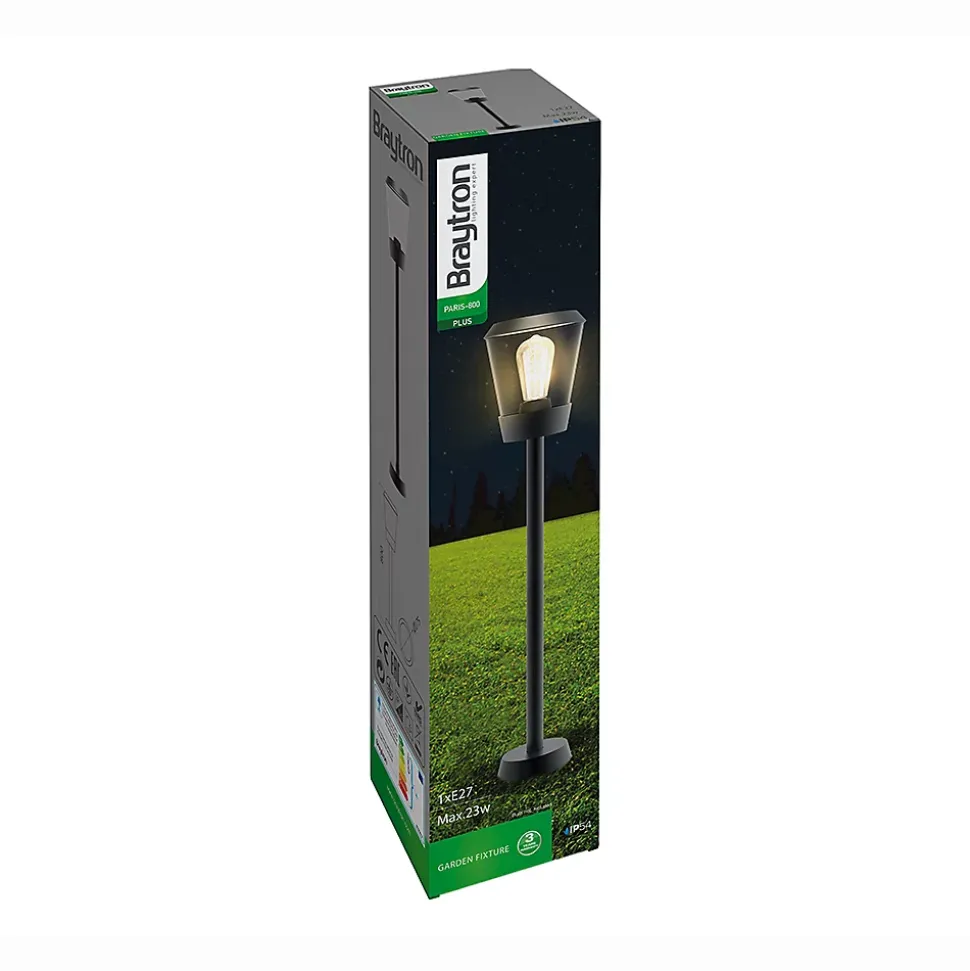 Le potelet extérieur Haut 800mm E27 IP54 convient pour une installation extérieur, pour éclairer une allée, une terrasse ou le jardin par exemple. La qualité des finitions est irréprochable pour ce potelet moderne qui met en valeur l’extérieur de votre habitat tout en sécurisant son accès. Ce potelet extérieur Haut 800mm est munit d’un culot E27. Nous recommandons l’installation d’une ampoule LED E27 à filament, design et contemporaine. En effet l’ampoule visible à travers le diffuseur transparent, contribue au design général du potelet. La finition gris mat apporte une touche sobre et raffinée. La structure est en aluminium et le diffuseur en PC robuste et durable. Ses dimensions sont les suivantes, hauteur 800mm et diamètre 175mm. L’indice de protection IP54 assure que le produit est : Protégé contre les poussières et autres résidus microscopiques Protégé contre les jets d’eau de toutes directions à la lance (buse de 6,3 mm, distance 2,5 à 3 m, débit 12,5 l/min ±5 %). Les produits dotés d’un indice de protection IP54 sont destinés à une installation extérieur. Hauteur : 800mm Diamètre : 175mm Culot : E27 Indice de protection : IP54 Grâce à son rendement énergétique élevé, cette borne possède une classe énergétique A++ à A. Produit conforme à la norme CE, à la directive RoHS et DEEE.