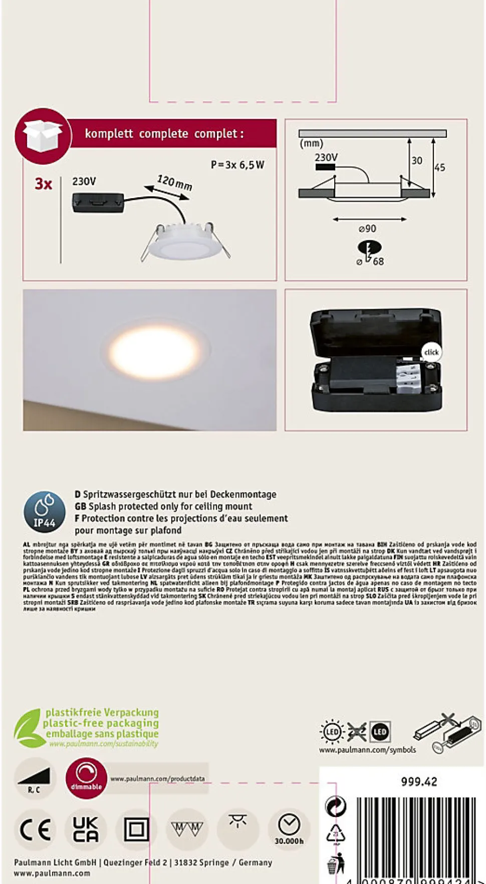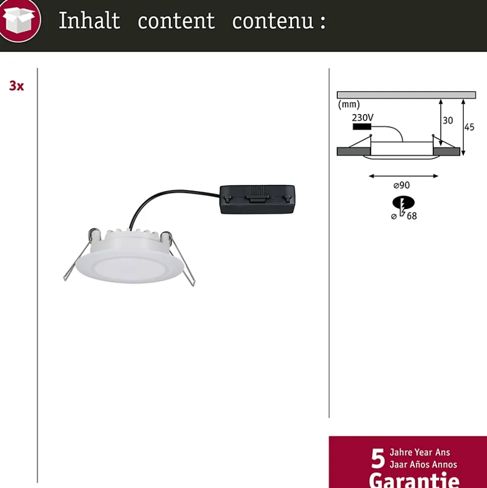 Kit composé de 3 luminaires fourni avec module LED|Variation de température de blanc chaud|Protection IP : IP44 – Protection contre les projections d’eau|Pour raccordement direct au secteur 230V