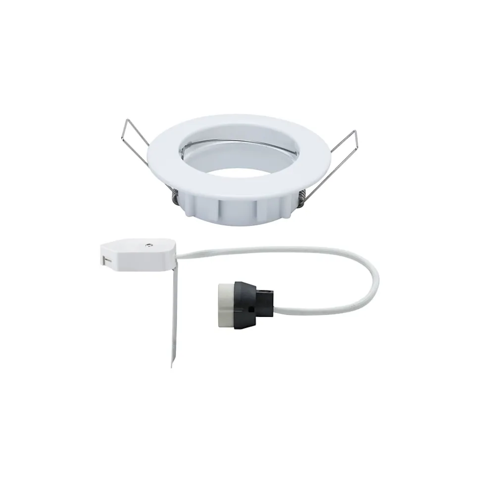 Encastré pour ampoule 230V LED, Energy Saving ou halogène|Matériau: Alu zinc|Couleur: Blanc|Des ampoules LED- ou à économie d’énergie ou en technologie halogène sont conseillées pour ce luminaire|Protection IP44 (montage au plafond) – pour salles de bains et pièces humides.|La profondeur d’encastrement: 90mm|Diamètre: 79mm|Tension d’alimentation: 230 V|Classe de protection II|Ne pas oublier : Commandez l’ampoule adaptée en même temps !|Changement d’ampoule particulièrement rapide et simple grâce à l’ingénieux système Easy-Click.