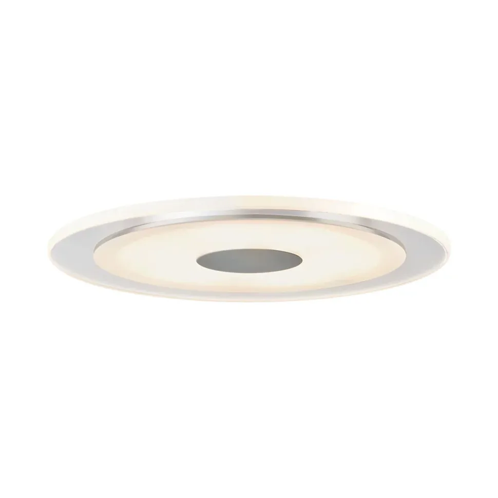 Kit composé de 3 luminaires fourni avec module LED|Matériau: Alu / Acryl|Couleur: Alu tourné / Satiné|Technologie LED basse consommation (fait économiser jusqu’à 80 % d’énergie par rapport aux ampoules à incandescence classiques)|Type de protection : IP23 (pour montage au plafond)|Diamètre: 150mm|Raccordement simple par connecteurs|Classe de protection II|Température de couleur: 3000K – Blanc chaud|Fourni avec transformateur