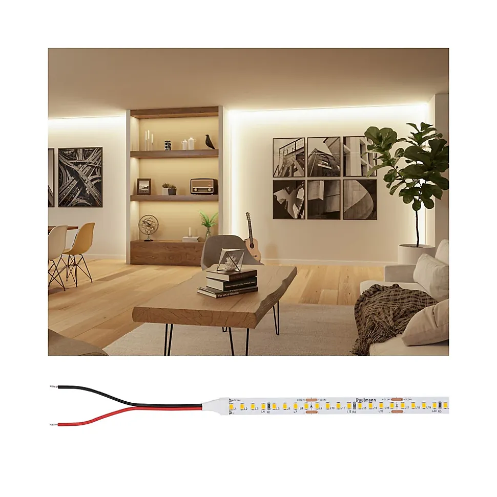 Des Strips LED de haute qualité pour des projets d’éclairage intérieur professionnels|Longue durée de vie de 30 000 h|Rendu des couleurs CRI ≥ 80 et consistance des couleurs SDCM 5|Câble d’alimentation bilatéral (200 mm)|Une logistique optimisée et durable : Emballage petit, compact et sans plastique|Ensemble d’accessoires complet : Connecteurs, commandes et accessoires d’alimentation correspondants disponibles|Sécurité de planification grâce aux données DIALux disponibles