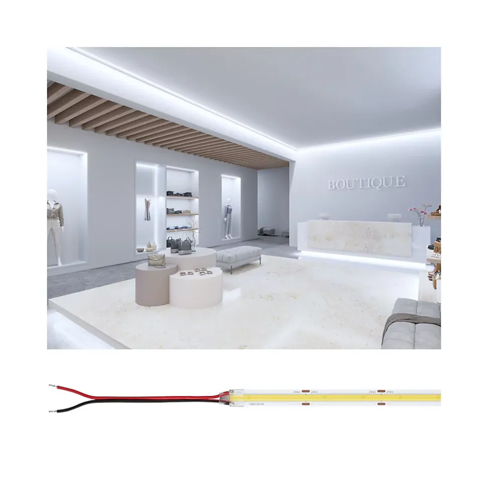 Des Strips LED de haute qualité pour des projets d’éclairage intérieur professionnels|Longue durée de vie de 30 000 h|Rendu des couleurs CRI ≥ 80 et consistance des couleurs SDCM 5|Câble d’alimentation bilatéral (200 mm)|Une logistique optimisée et durable : Emballage petit, compact et sans plastique|Ensemble d’accessoires complet : Connecteurs, commandes et accessoires d’alimentation correspondants disponibles|Sécurité de planification grâce aux données DIALux disponibles