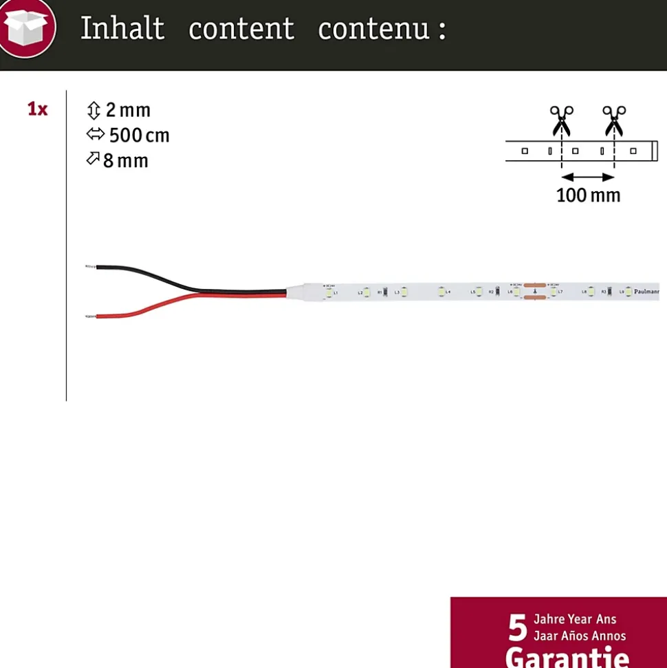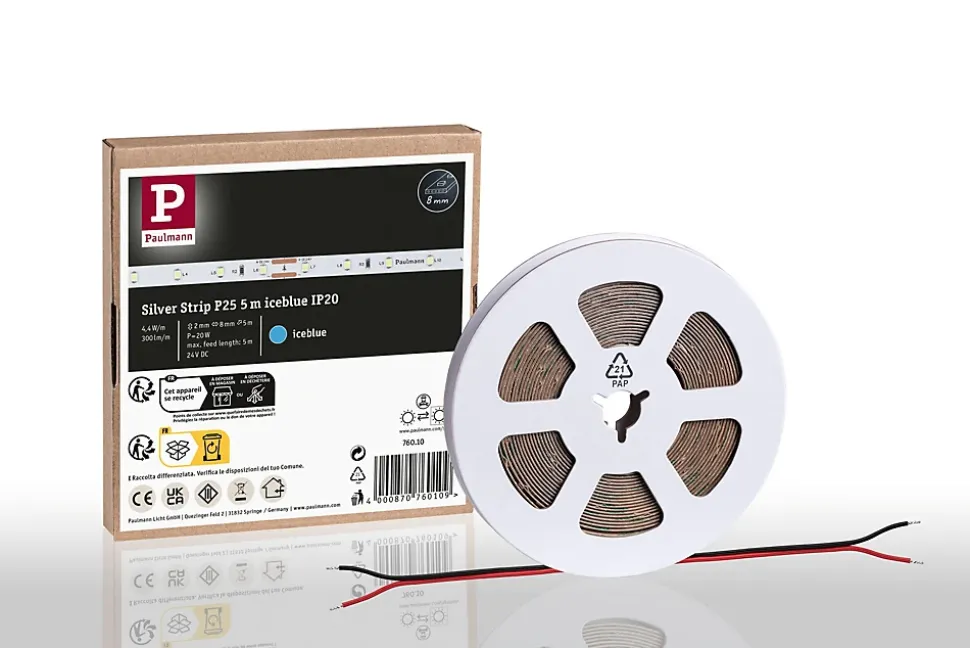 Le Pro Strip Silver P25 professionnel 24 V d’une longueur de 5 m, de couleur verte, n’est pas pourvu de revêtement (IP20) et possède un câble de raccordement aux deux extrémités ouvertes. Avec 60 LED/m et 300lm/m, il crée un éclairage d’appoint agréable. Les Pro Strips de qualité Silver conviennent parfaitement à une utilisation professionnelle dans des locaux commerciaux et privés et produisent une très bonne qualité de lumière avec un rendu des couleurs de CRI ≥ 80 et une consistance des couleurs de SDCM 5. Des composants de haute qualité garantissent une longue durée de vie d’au moins 30.000 heures. Commandez également le Controller et la télécommande, y compris la commande d’une ou de plusieurs zones, ainsi que les fonctions Quick Connect et réseau maillé. Vous avez également le choix entre les connecteurs Slim ou Quick, qui couvrent toutes les possibilités de raccordement et visent un encombrement minimal ou une installation efficace. De plus, une sélection d’alimentations à très longue durée de vie (50 000 heures) est disponible en cinq niveaux de puissance.