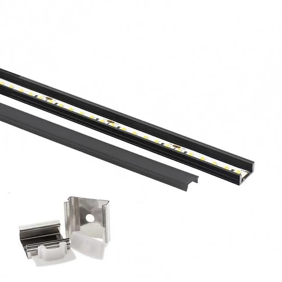 Ce profilé aluminium de 2 mètres avec cache opaque noir est idéal pour intégrer vos rubans LED 12V ou 24V en toute discrétion. Sa finition noire s’adapte parfaitement à un intérieur contemporain ou un environnement industriel.Caractéristiques principales du profilé aluminium noir 2m pour ruban LEDLongueur : 2 mètres pour des installations longues et continues.Couleur : noir mat, pour une intégration discrète et élégante.Cache : opaque noir en plastique diffusant, assurant une lumière homogène sans points lumineux visibles.Matériau : aluminium pour une bonne dissipation thermique et protection du ruban LED.Accessoires fournis : 1 profilé alu 2m, 1 cache noir, 4 crochets de fixation, 2 embouts latéraux.Compatibilité : adapté aux rubans LED basse tension 12V et 24V. Non compatible avec rubans LED 220V trop larges.Les avantages du profilé aluminium 2m noir avec cache opaqueCe profilé protège efficacement vos rubans LED de la poussière tout en garantissant une diffusion lumineuse uniforme grâce à son cache noir opaque. Il offre une finition moderne et élégante adaptée à de nombreux environnements, tout en assurant une dissipation thermique optimale pour prolonger la durée de vie des LED.Comment installer ce profilé aluminium noir 2m pour ruban LED ?Positionnez le profilé à l’emplacement souhaité.Fixez-le à l’aide des 4 crochets fournis (vis non incluses).Insérez votre ruban LED à l’intérieur du profilé.Clippez le cache opaque noir pour une diffusion lumineuse homogène.Posez les fermetures latérales pour une finition propre.Où installer ce profilé aluminium noir 2m pour ruban LED ?Parfait pour