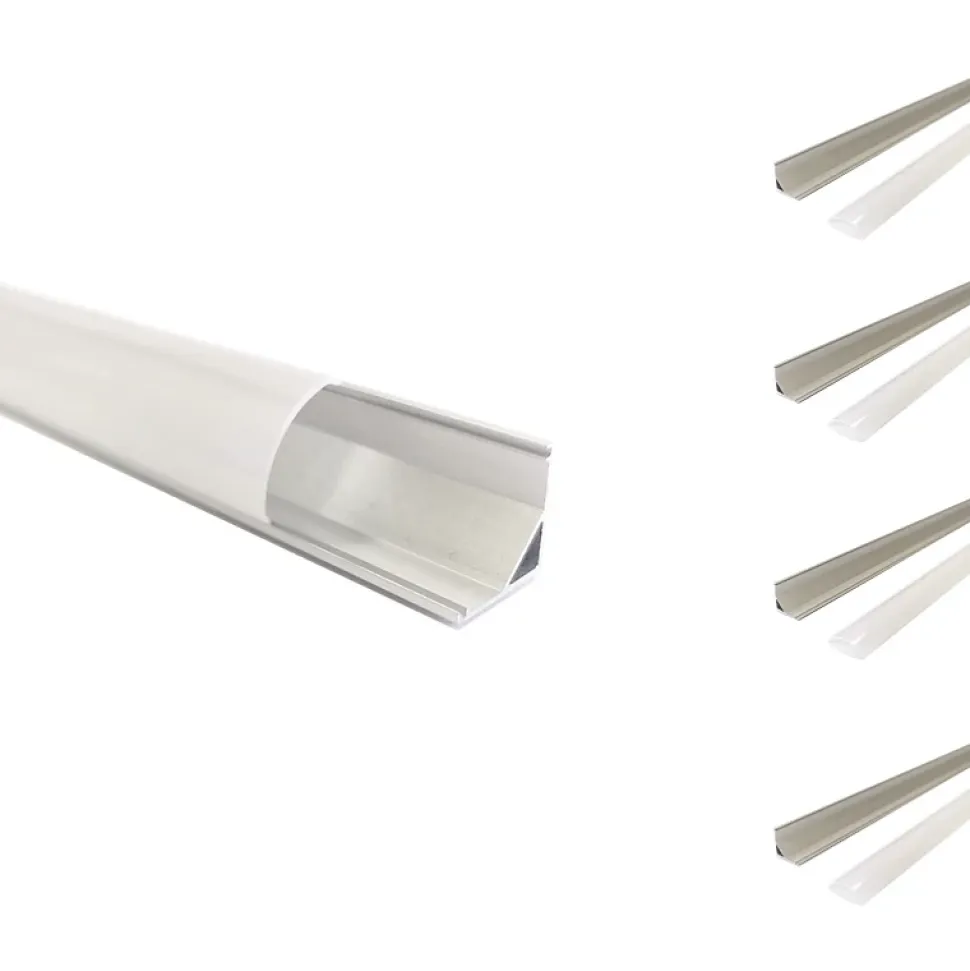 Conçu pour les installations LED en angle, ce lot de 5 profilés aluminium 2 mètres avec couvercle blanc opaque offre une finition professionnelle, une diffusion homogène et une protection durable de vos rubans LED.Caractéristiques techniques du profilé aluminium d’angle 2mCe profilé LED angle blanc opaque est spécialement pensé pour les poses en angle :Dimensions : 200 x 2,7 x 1,6 cmMatériaux : aluminium résistant + couvercle opaque en PVCIndice de protection : IP20 – utilisation intérieure uniquementType d’installation : en saillie (pose mur/plafond, étagères, niches)Compatibilité : rubans LED 12V et 24V (⚠️ non compatible avec 220V)Température de fonctionnement : -20°C à +45°CCouleur : blancCertification : CE & RoHSGarantie : 2 ansConditionnement : pack de 5 profilés d’angleLes atouts du pack profilés LED d’angle blanc opaqueGrâce à sa conception en aluminium, ce profilé d’angle 2m favorise la dissipation thermique, prolongeant la durée de vie de vos rubans LED. Le couvercle blanc opaque assure une diffusion lumineuse douce et uniforme, sans points lumineux visibles. Ce modèle est particulièrement adapté pour les installations LED discrètes et design, où l’éclairage doit être orienté à 45° pour mettre en valeur les surfaces ou éviter l’éblouissement.Mode d’installation du profilé d’angle LED 2mL’installation est simple et rapide, même pour des projets de grande envergure :Fixez le profilé d’angle au mur ou au plafond à l’aide des crochets fournisInsérez le ruban