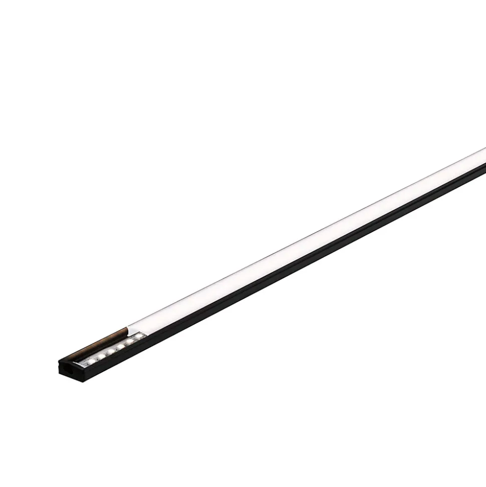 Le profilé Base d’une longueur de 1 mètre en noir mat crée un effet lumineux décoratif impressionnant sur les meubles ou les murs. Il s’agit d’un profil extrudé fin aux multiples usages pouvant être équipé de strips MaxLED. Pour atteindre une force de lumière décorative suffisante, il est recommandé d’utiliser MaxLED 1000. Avec sa finition satinée, le diffuseur blanc amovible assure une restitution de la lumière homogène et sans éblouissement. Le procédé d’anodisation de haute qualité renforce efficacement la surface du profilé contre les égratignures.