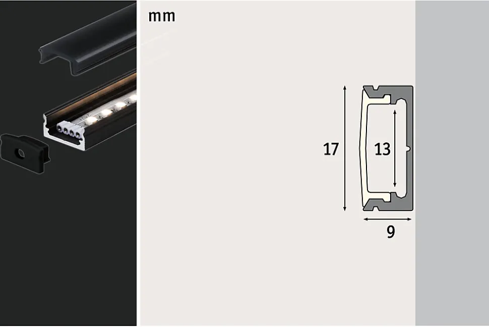 Profilé de strip LED Base IP20 noir Paulmann L.200 x H.9 x P.17cm