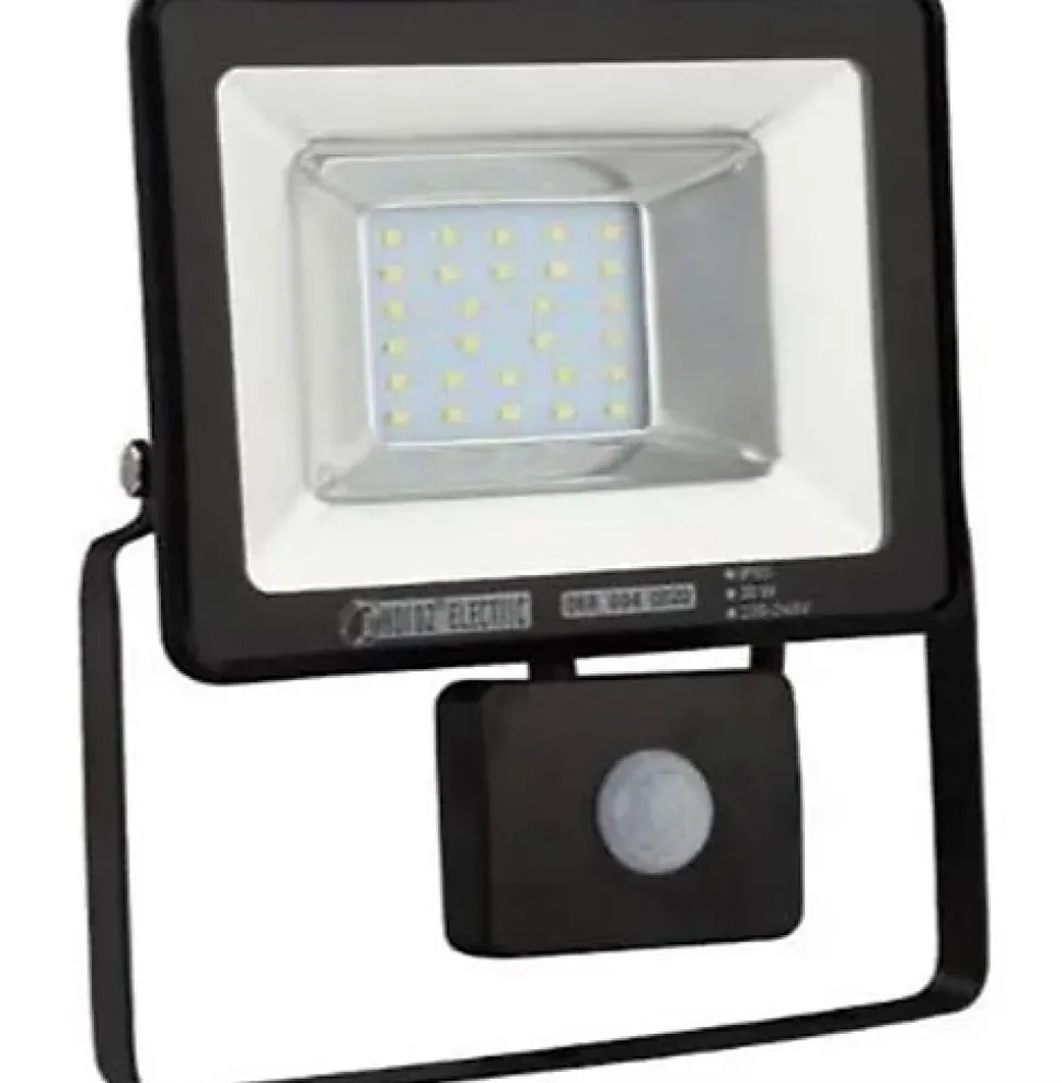 Ce projecteur à LED extra plat avec détecteur 20W IP65 6400K Dim. 208x182x62mm, est conçu pour résister aux intempéries. Équivalent à 160W, il offre plus de 80% d’économie d’énergie par rapport aux projecteurs halogènes classiques. Possédant une très longue durée de vie, ce projecteur saura répondre à vos attentes en matière de réduction des coûts. Extra plat pour un faible encombrement et avec un socle orientable, son installation simple et rapide vous permettra de cibler et d’éclairer parfaitement les espaces extérieurs de votre habitat. Son corps est en aluminium et son diffuseur en verre. L’indice de protection IP65 assure que le produit est : Protégé totalement contre les poussières Protégé contre les projections d’eau à la lance provenant de toutes les directions Les produits dotés d’un indice de protection IP65 résistent aux intempéries et conviennent donc à une installation à l’extérieur. Son angle de diffusion de 100° vous offrira un éclairage optimal dans toutes les conditions d’installation tandis que son angle de détection de 180° et jusqu’à 10 mètres vous garantira un maximum de sécurité. Réglage de l’intensité et de la durée d’activation. Grâce à son rendement énergétique élevé, ce projecteur LED possède une classe énergétique A++ à A. Produit conforme à la norme CE, à la directive RoHS et DEEE.