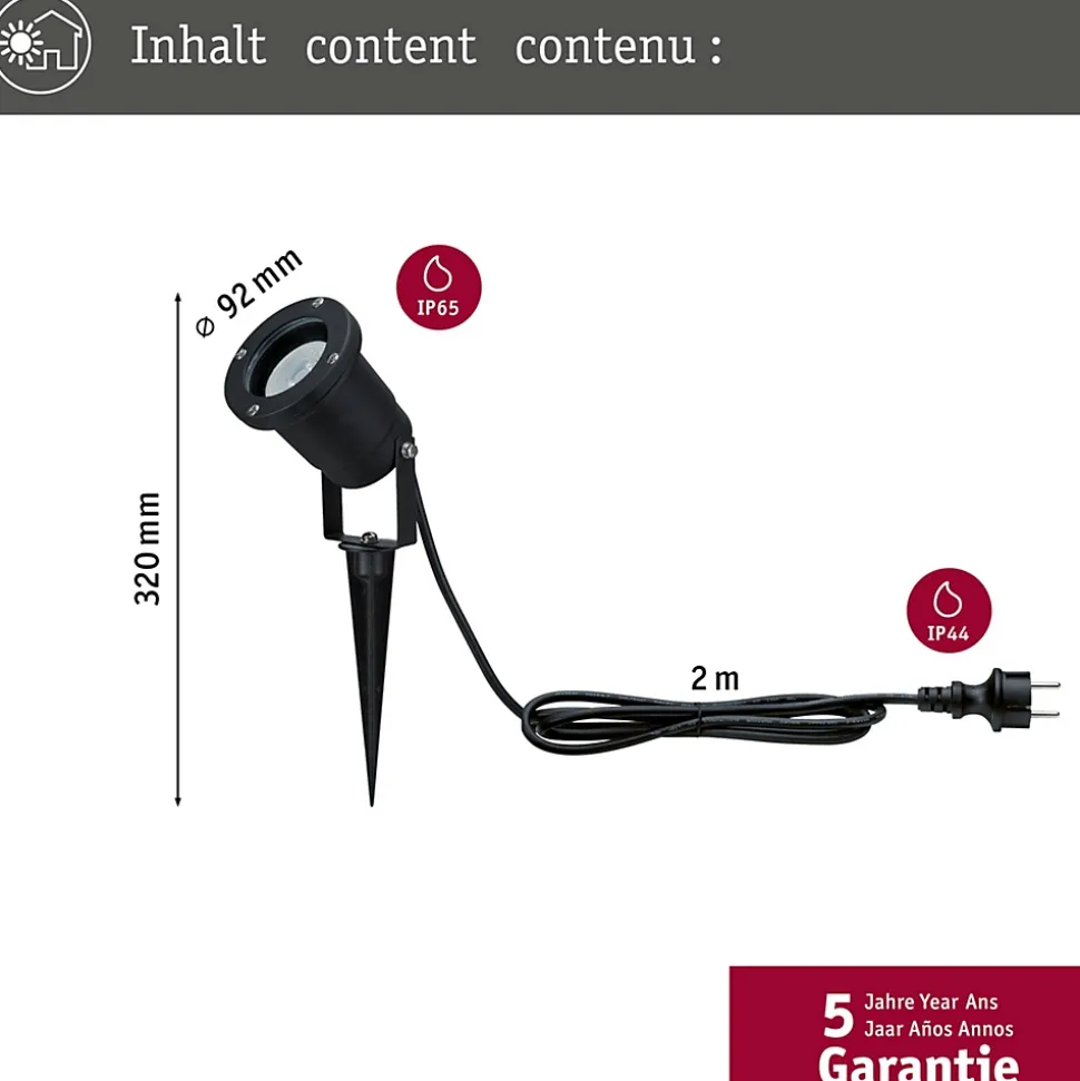 Le spot de jardin réglable éclaire vos fleurs, arbustes et arbres dans une lumière blanc chaud. L’ampoule adaptée est fournie. Si vous le souhaitez, vous pouvez aussi utiliser le luminaire sans piquet en tant que spot en saillie pour l’éclairage des façades, des abris de jardin et des terrasses.