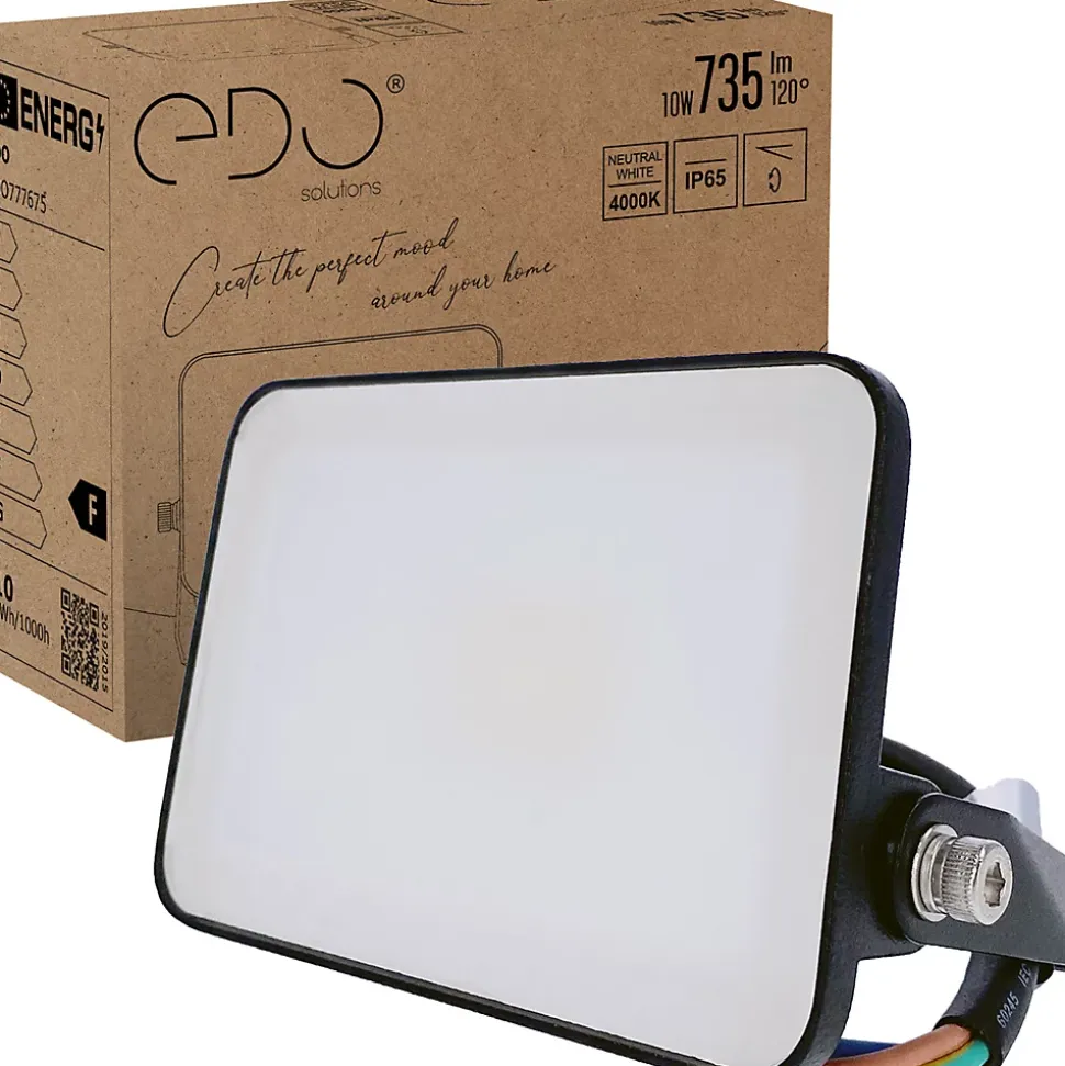 Projecteur extérieur LED Zoran sans cadre, 10W, 4000K (blanc neutre), 735lm, IP65, 220–240V | EDO SolutionsDONNÉESType de projecteur : projecteur à LEDApplication : Intérieur, ExtérieurMontage : en saillieRéglable : ouiHauteur : 105mmlargeur : 123mmprofondeur : 40mmCouleur : noirMatériau : aluminium+verreCouleur de l’écran : laiteuxClasse d’efficacité énergétique [A-G] : FDimmable : nonCapteur : nonPuissance [W] : 10WPuissance en mode veille Psb/Pnet [W] : -Tension [V] : 220-240 V ACfréquence[Hz] : 50-60 HzCouleur de lumière : blanc neutretempérature de couleur [K] : 4000KChangement de couleur de lumière : nonangle d’éclairage : 120Indice de rendu des couleurs CRI : Ra70R9 Indice de rendu des couleurs : 11Flux lumineux utilisable [lm] : 735lmModule LED remplaçable : nonDurée de vie nominale [h] : 25000hNombre de cycles marche/arrêt : 15000INDICE DE PROTECTION : IP65IK : IK05