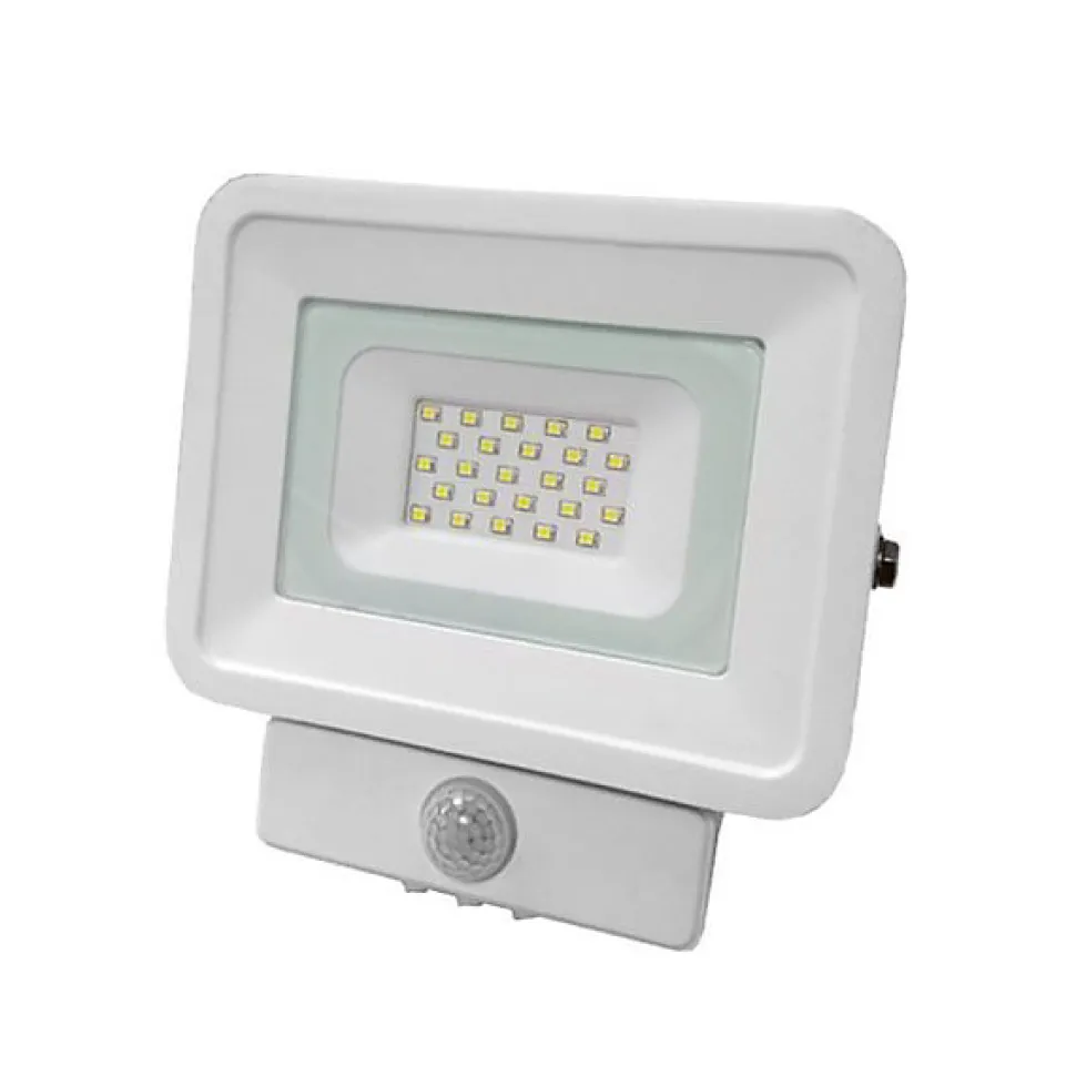 Les caractéristiques techniquesCe Projecteur Led avec détecteur infrarouge 20W 4500K IP65 blanc est destiné à être installé dans votre jardin, vos allées ou votre terrasse. Il se met en route dès qu’il détecte une présence dans un rayon de 5 à 15 mètres.Vous pouvez régler le temps d’allumage de 10 secondes à 8 minutes.Il est en fonte d’aluminium et en verre trempé ce qui garantit sa solidité.Ce Projecteur Led correspond à un projecteur traditionnel de 115W.L’indice de protection (IP) 65 permet son installation à l’extérieur. Par ailleurs, il peut fonctionner à des températures allant de -30 à +50°.Il diffuse une lumière blanc neutre équivalant à la lumière du jour.Les avantages pratiquesLe détecteur de mouvements du Projecteur Led permet un allumage et une extinction automatiques générant de substantielles économies d’énergie.L’installation de ce type de projecteur vous permet de garantir votre sécurité (plus besoin de chercher interrupteur lorsque vous arrivez chez vous) et celle de votre domicile (l’allumage automatique est dissuasif pour d’éventuels visiteurs malintentionnés)Le Projecteur Led avec détecteur infrarouge 20W 4500K IP65 existe aussi en noir (ref 5857)