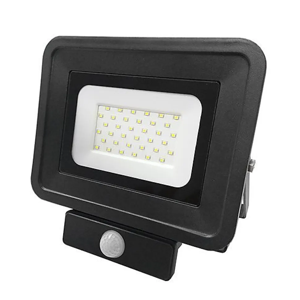 Les caractéristiques techniquesCe Projecteur Led avec détecteur infrarouge 30W 4500K IP65 noir est destiné à être installé dans votre jardin, vos allées ou votre terrasse. Il se met en route dès qu’il détecte une présence dans un rayon de 5 à 15 mètres.Vous pouvez régler le temps d’allumage de 10 secondes à 8 minutes.Il est en fonte d’aluminium et en verre trempé ce qui garantit sa solidité.Ce Projecteur Led correspond à un projecteur traditionnel de 170W.L’indice de protection (IP) 65 permet son installation à l’extérieur. Par ailleurs, il peut fonctionner à des températures allant de -30 à +50°.Il diffuse une lumière blanc neutre équivalant à la lumière du jour.Les avantages pratiquesLe détecteur de mouvements du Projecteur Led permet un allumage et une extinction automatiques générant de substantielles économies d’énergie.L’installation de ce type de projecteur vous permet de garantir votre sécurité (plus besoin de chercher interrupteur lorsque vous arrivez chez vous) et celle de votre domicile (l’allumage automatique est dissuasif pour d’éventuels visiteurs malintentionnés)Le Projecteur Led avec détecteur infrarouge 30W 4500K IP65 existe aussi en blanc (ref 5848)