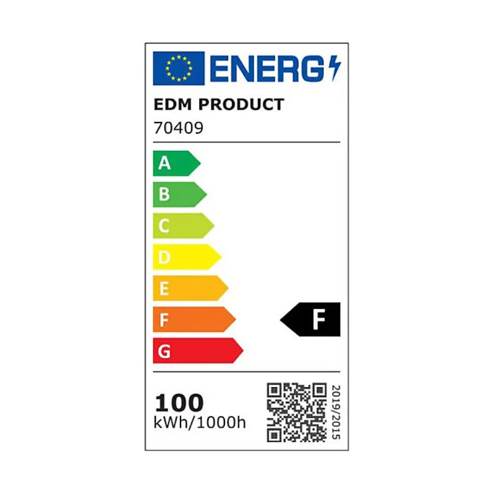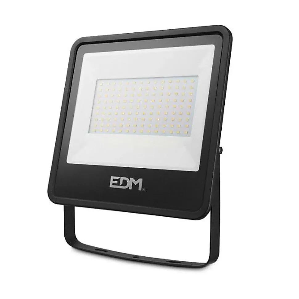 Spot LED 100W 8200lm 4000K lumière du jour IP65. Dimensions : 24,6×22,8×2,9cm. Durée de vie : 25 000h. Tension : 220/240V. Fréquence : 50Hz. Classe F. Angle de diffusion : 120°. Comprend un connecteur de câble étanche IP68. Série Black. Marque : edm.