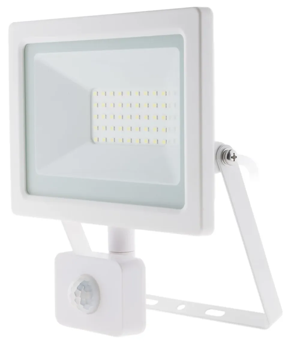 Projecteur LED étanche. En noir ou blanc. Indice de protection : IP44. Type de LED : SMD 2835. Portée d’éclairage : 5m. Puissance : 30W. Intensité lumineuse : 2400 lumens. Température de couleur : 6000K. Couleur d’éclairage : blanc froid. Type de câble : H05RN-F 3G 1mm² (longueur 35cm). Angle de diffusion : 120°. Temps de détection réglable : de 3 secondes à 20 minutes. Portée de détection réglable : 8 mètres. Sensibilité lumineuse réglable : de 5 à 2000lux