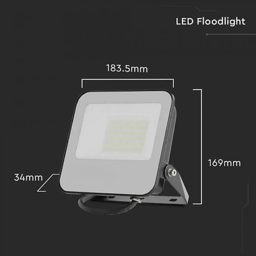 Alliant puissance et sobriété, ce projecteur LED de 50W diffuse une lumière exceptionnelle de 9250 lumens. Idéal pour sécuriser et éclairer efficacement vos espaces extérieurs, il combine performance énergétique et design compact.Les spécificités techniques du projecteur LED 50W haute efficacitéCe modèle se distingue par ses composants de qualité et ses performances lumineuses élevées :Puissance : 50W pour un éclairage puissant sans surconsommation.Efficacité lumineuse : 185 lm/W, soit une intensité de 9250 lumens.Angle de diffusion : 115°, pour une large couverture lumineuse.Indice de protection : IP65, parfait pour une utilisation en extérieur, résistant à l’eau et à la poussière.Température de fonctionnement : de -20°C à +45°C, adapté à toutes les saisons.Durée de vie : ~25 000 heures, pour un usage longue durée sans entretien.Tension d’alimentation : 220-240V AC, prêt à brancher.Type de LED : SMD pour une meilleure répartition de la lumière.Matériau : corps en aluminium gris, robuste et moderne.Dimensions : 18,3 x 16,9 x 3,4 cm, format compact et discret.Installation : à fixer, avec câble d’alimentation de 35 cm inclus.Non dimmable : éclairage constant, non compatible avec variateur.Certifications : conforme CE & RoHS, gage de sécurité et qualité.Pourquoi choisir ce projecteur LED extérieur 50W ?Ce projecteur LED 50W est conçu pour ceux qui recherchent à la fois performance lumineuse et fiabilité. Avec son