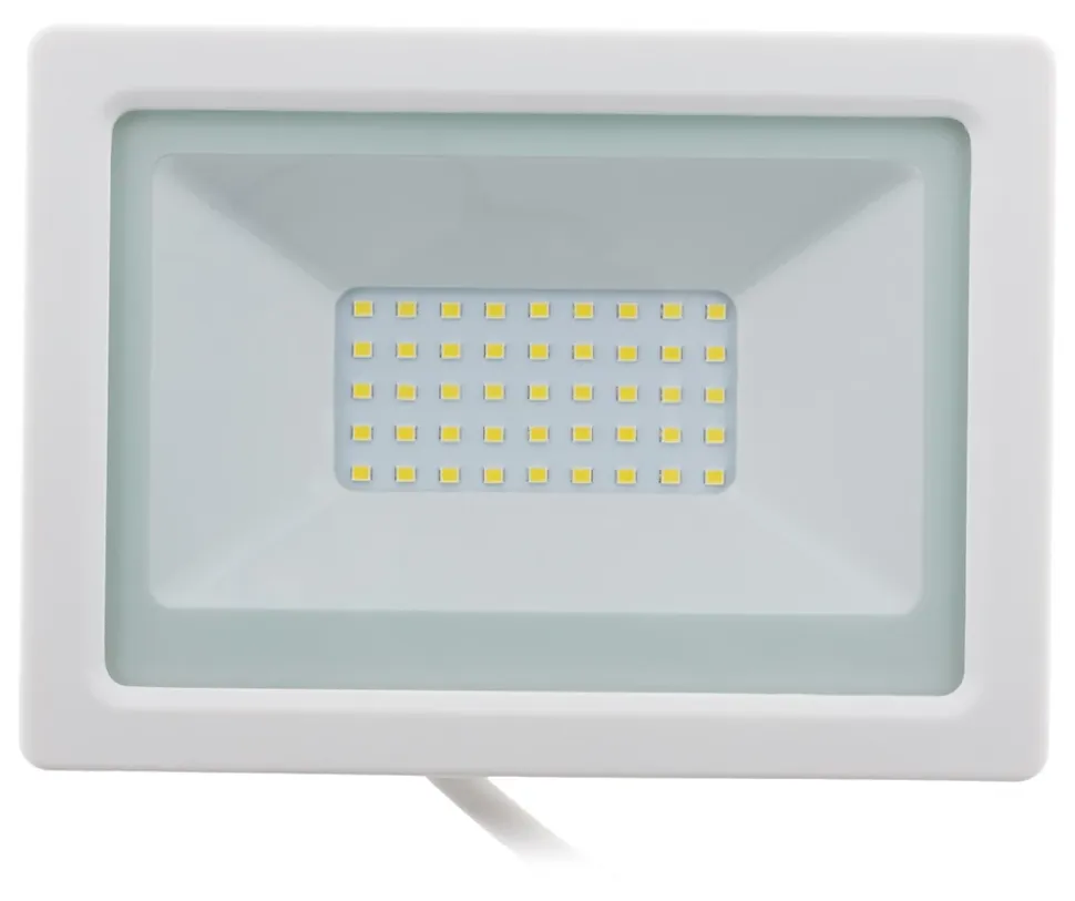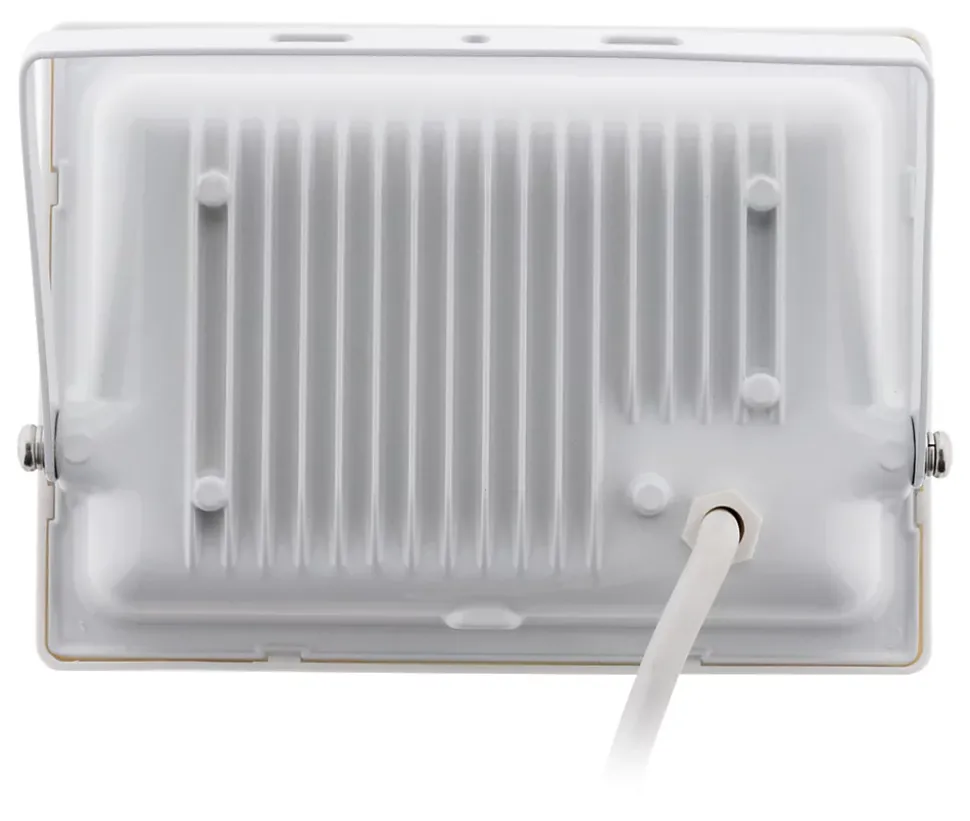 Projecteur étanche (IP65), LED SMD 2835, Portée d’éclairage : 5 mètres, Design compact, Puissance : 30 Watts, Flux lumineux : 2400 lumens, Kelvins : 6000K (blanc froid), Câble : 35cm H05RN-F 3G*1.00mm, Matériaux : corps en aluminium, Angle de diffusion : 120°