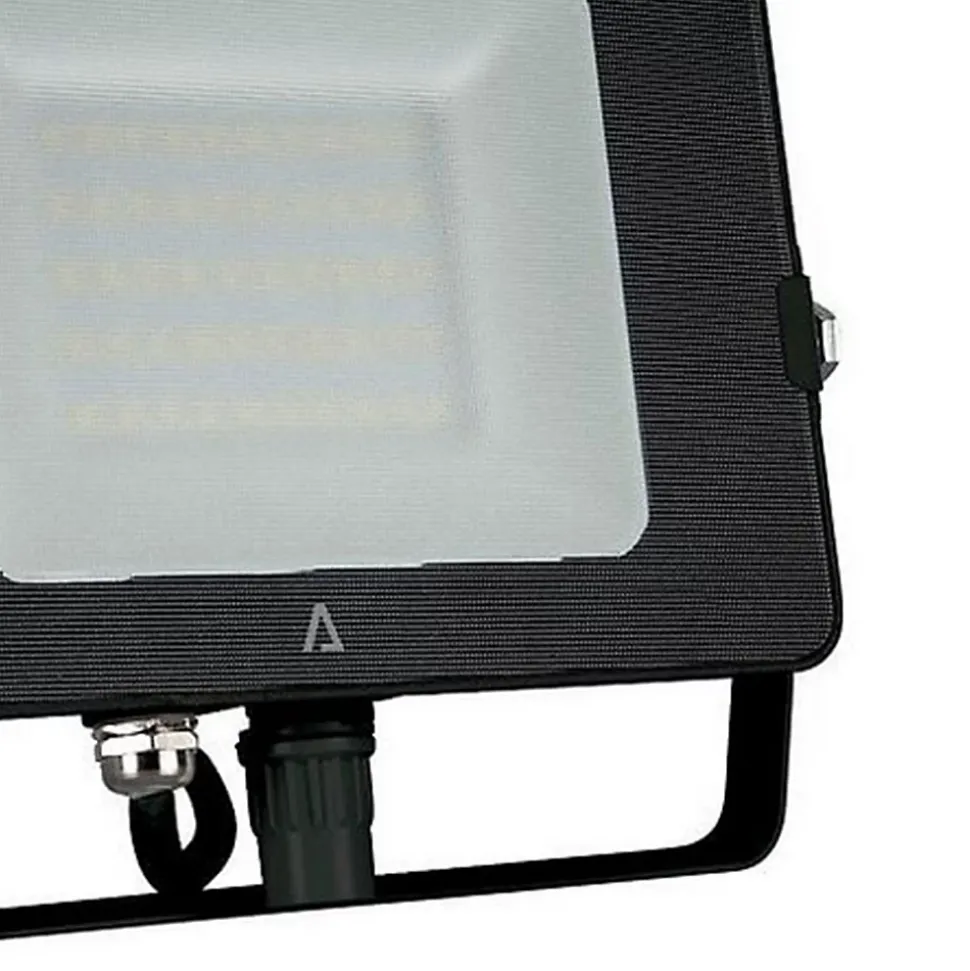 Projecteur LED 20W noir ASLO. Nombre de LED : 24. Type de LED : SMD 3030. 3000 K (blanc chaud). Angle du faisceau : 120°. Puissance : 20W. Flux lumineux : 1600 Lm. Tension d’alimentation : 230V – 50 Hz. Extérieur/Intérieur. Longueur du câble électrique : 3m. Verre anti-éblouissement. IP65. Classe d’isolation : I. Normes CE/RoHS. Dimensions : 11.22 x 9.8 x 24 cm. Poids : 0.34 kg.