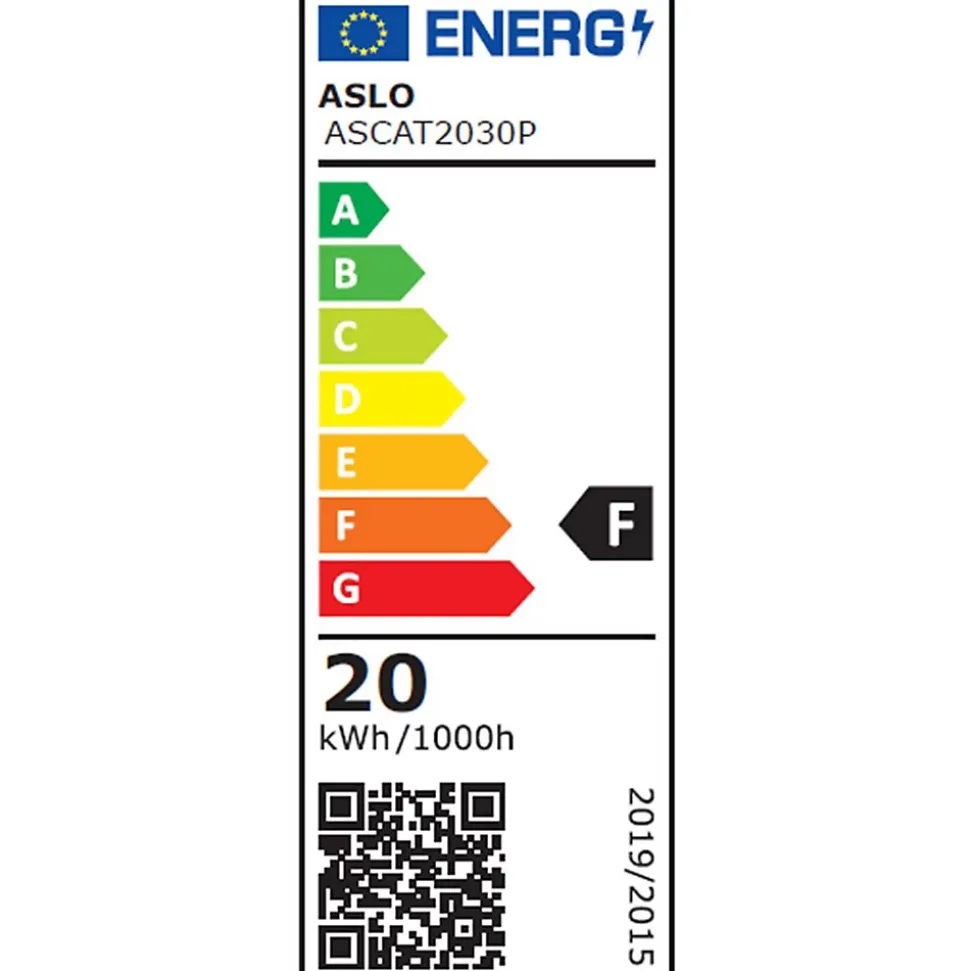 Le projecteur LED ASLO 20W est une solution d’éclairage à la pointe de la technologie. A la fois polyvalent et durable, ce projecteur est prêt à répondre à vos besoins d’éclairage, que ce soit pour l’illumination de votre jardin, de votre espace extérieur, de vos locaux industriels ou de votre zone de travail. Avec 24 LED offrant une puissance de 20W, ce spot génère un flux lumineux impressionnant de 1600 Lm avec une efficacité lumineuse de 81.18 Lm/W. Cela signifie que vous obtenez un éclairage puissant tout en économisant de l’énergie. De plus, la durée de vie de 25 000 heures et les 80 000 cycles de commutation assurent une longévité exceptionnelle.Conçus pour être utilisés dans des environnements extérieurs difficiles, ils sont très résistants notamment grâce à l’IP65.La possibilité de fixation saillie sur un mur ou un plafond vous donne la flexibilité nécessaire pour répondre à vos besoins d’éclairage. De plus, son verre anti-éblouissement améliore le confort visuel.Caractéristiques : – Nombre de LED : 24.- Type de LED : SMD 3030.- Température de couleur : 3000 K (blanc chaud).- Angle du faisceau : 120°.- Durée de vie : 25 000 heures. – Cycles de commutation (marche/arrêt) : 80 000. – Puissance : 20W. – Flux lumineux : 1600 Lm.- Efficacité lumineuse : 81.18 Lm/W. – Intensité lumineuse max : 701.7 cd. – Efficacité énergétique : F- Indice de rendu de couleur : >70 Ra. – Tension d’alimentation : 230V – 50 Hz. – Type de courant AC. – Utilisation : Extérieur/Intérieur. – Fixation saillie, sur mur ou plafond. – Longueur du câble électrique : 3m. – Section : 3GO.75 mm². – Verre anti-éblouissement. – Système de connexion du détecteur : Easyfit. – Résistance aux chocs mécaniques : 07 IK.- Indice de protection : IP65. – Classe d’isolation : I.- Normes CE/RoHS. – Mat