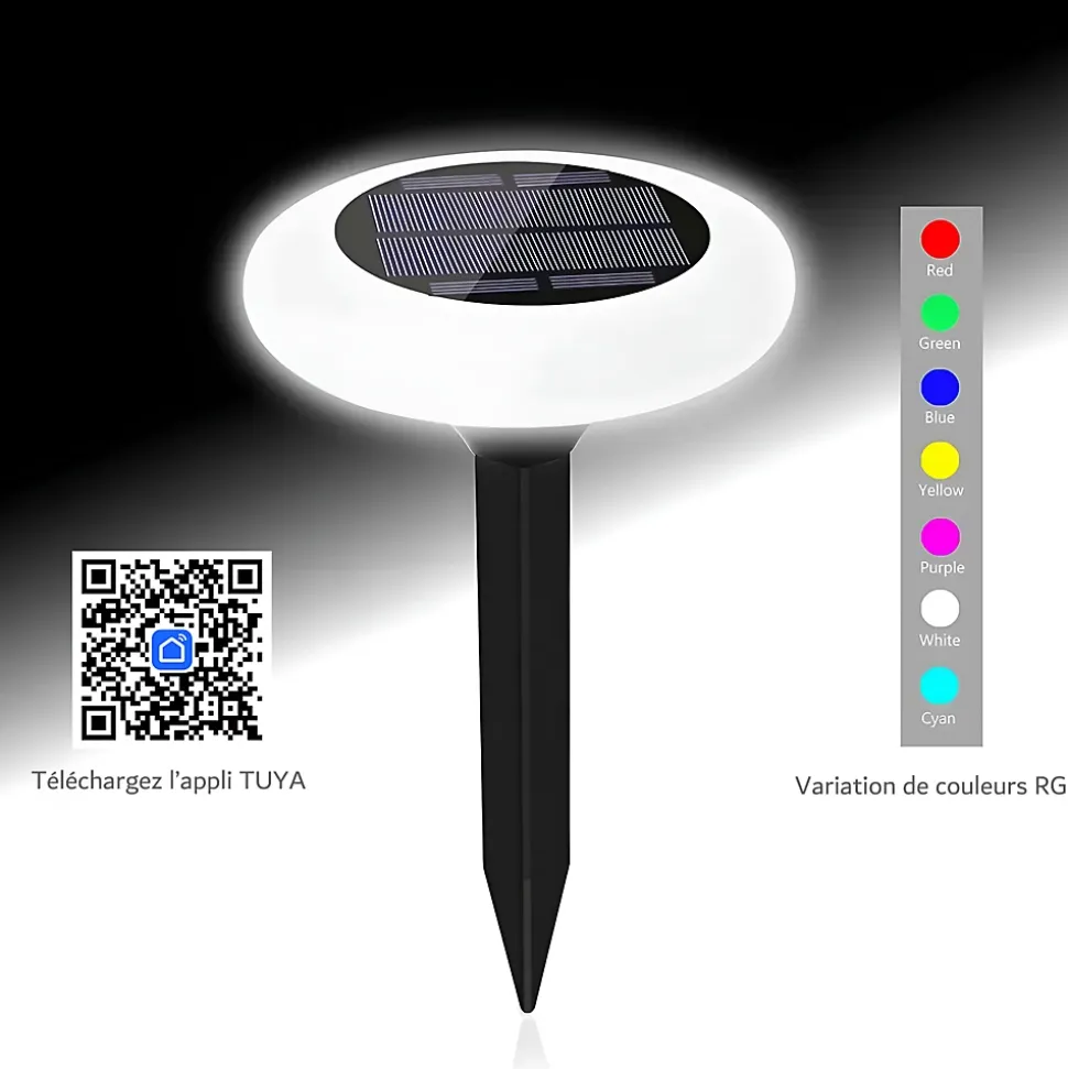Caractéristiques principales :Puissance : 3 WLuminosité : 100 lmDimensions : φ154 * H240mmIndice d’étanche : IP67Matériaux : ABSTempérature de couleur : RGB (TUYA intelligent)Temps d’allumage : InstantanéDurée de vie : 30 000hCouleur : NoirNote : Réglage de la température de couleur via l’application « smart life »