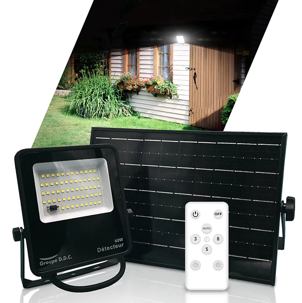 Ce projecteur solaire avec détecteur de mouvement est la solution idéale pour offrir un éclairage extérieur puissant et intelligent, adapté aux besoins de sécurité et d’économie d’énergie. Avec ses quatre modèles allant de 500 à 2200 lumens, il assure un éclairage LED intense, parfait pour illuminer vos allées, façades, terrasses ou jardins. Sa lumière blanche froide de 6000K garantit une visibilité optimale, idéale pour un éclairage de sécurité efficace. Conçu en aluminium robuste et verre trempé, ce projecteur LED allie durabilité et modernité, tout en offrant une protection IP65, qui le rend étanche et résistant aux intempéries.Son design ultra-compact et fin est un atout majeur : la batterie est directement intégrée derrière le panneau solaire, permettant ainsi une installation discrète et efficace. Son panneau photovoltaïque haute performance assure une autonomie exceptionnelle allant jusqu’à 24 heures, garantissant un éclairage fiable toute la nuit. Le câble de 1,5 mètre permet une installation flexible, idéale pour ajuster l’orientation du panneau solaire afin d’optimiser la recharge solaire.