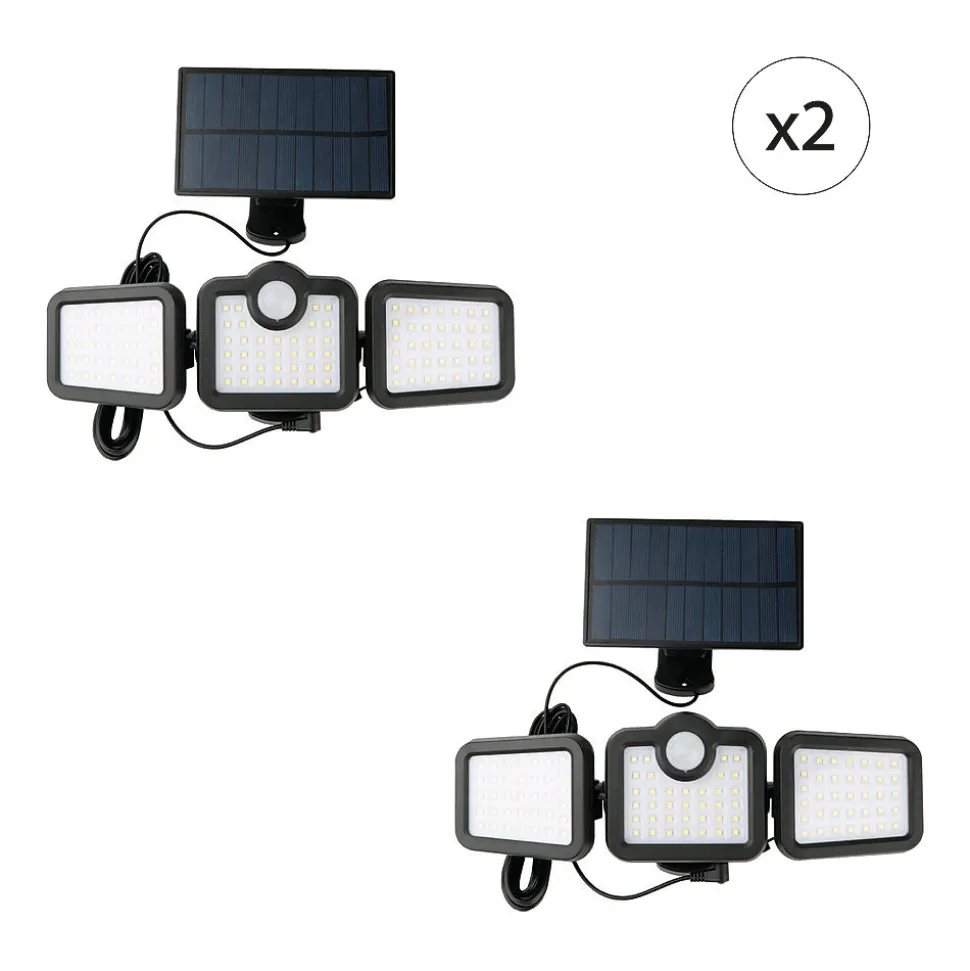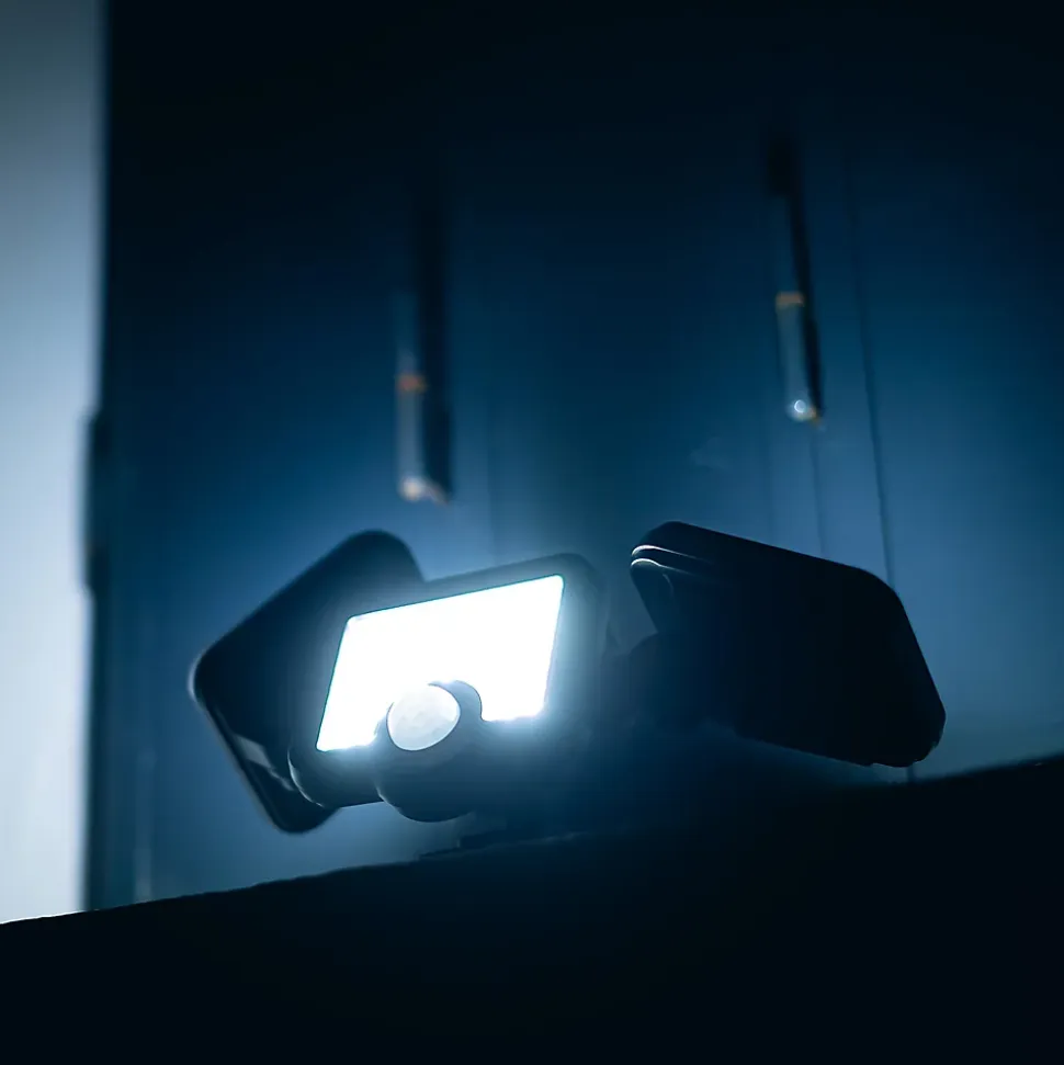 Un projecteur solaire performantEZIlight Solar Moon L est un projecteur solaire puissant avec son panneau déporté qui éclairera parfaitement tous les recoins de votre extérieur.. Détecteur de luminosité. Waterproof IP65. Modes : Veille, Veille+Détecteur de mouvements, Détecteur de mouvements. Revêtement plastique ABS. Batterie de 1200 mAh. Temps de charge de 8h. Autonomie de 10-12h. Panneau solaire intégré ou déporté pour une meilleure captation de la lumière solaireLot de 2 lampesUne solution d’éclairage puissanteEZIlight Solar moon L est un projecteur solaire très puissant. Grâce à ses LEDs Longlife, profitez d’une puissance éclairer vos allées, terrasse et jardin. De plus, ses 3 panneaux de LEDs orientables à 180° vous feront bénéficier d’une surface d’éclairage encore plus grande.3 modes de fonctionnement et une télécommande pour une utilisation facileEZIlight Solar moon L vous propose 3 utilisations différentes. Grâce à sa télécommande ou son bouton de contrôle facilement accessible, vous pourrez aisément choisir entre un mode veille qui éclairera à petite puissance en continu, un mode détecteur de mouvements ou mode veille + détecteur de mouvement qui éclairera vos allées et venues toute la nuit. Par ailleurs, vous pourrez faire fonctionner votre projecteur solaire même pendant la journée.Panneau solaire déportéEZIlight Solar moon L est équipé d’un panneau solaire déporté. Installez votre projecteur où vous le souhaitez et placez ensuite votre panneau solaire au s
