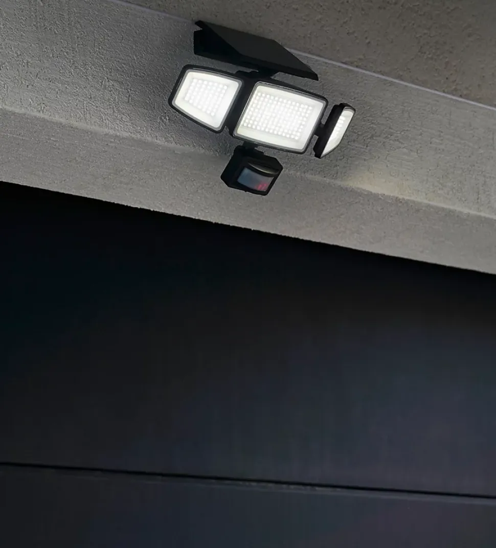 Bénéficiez d’une sécurité et d’une luminosité optimales grâce à cet éclairage solaire à 3 têtes avec détecteur infrarouge. Le détecteur de mouvement s’active instantanément et les têtes orientables vous permettent de diriger la lumière là où vous en avez besoin.