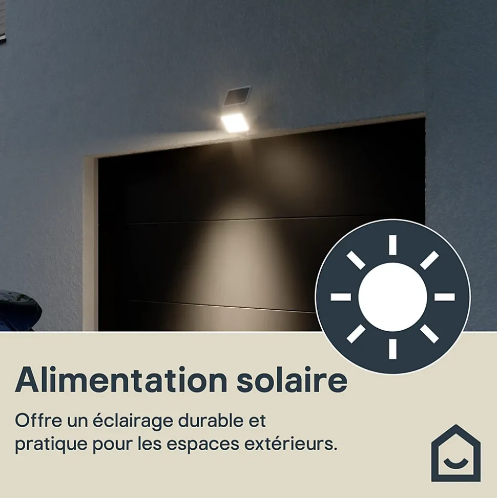Projecteur solaire LED intégré à détection Shomali 1000lm 9W IP44 blanc GoodHome