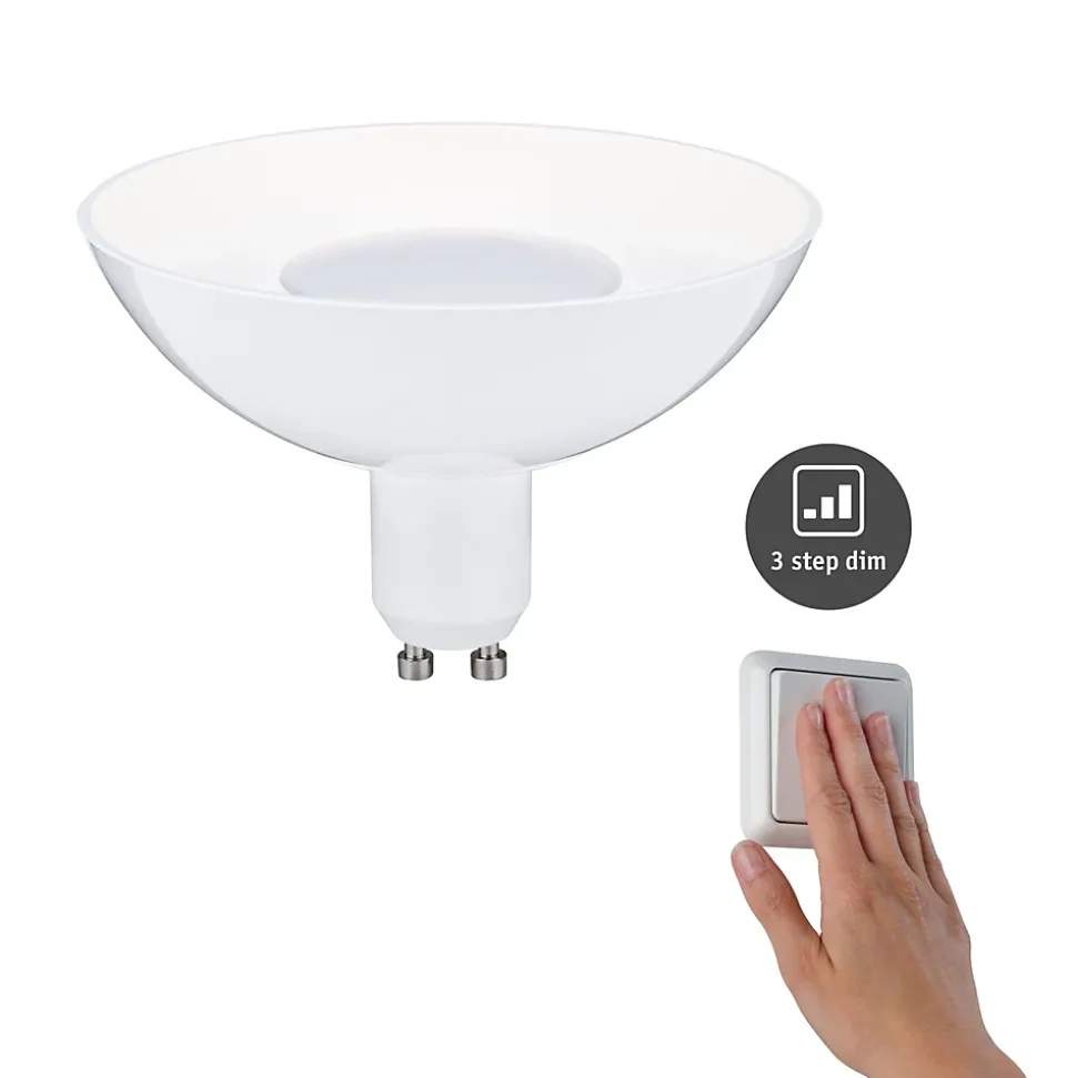 Les réflecteurs LED en Blanc sont le remplacement idéal de vos anciens réflecteurs halogènes. Avec la réflexion des rayons dans le revêtement miroir, ces luminaires garantissent un flux lumineux concentré que l’on peut orienter de manière ciblée. Grâce à leur esthétique partiellement transparente, ils peuvent être utilisés comme ampoules décoratives dans des réglettes. La fonction 3-Step-Dim intégrée vous permet de naviguer entre trois intensités de lumière en actionnant plusieurs fois un simple commutateur traditionnel.