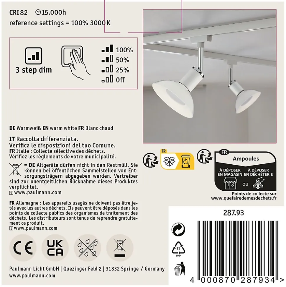 Un simple commutateur permet de faire varier la luminosité sur 3 niveaux|Réflecteur pour lumière dirigée|Des effets lumineux décoratifs mettent le plafond en valeur|L’ampoule à économie d’énergie économise jusqu’à 80% par rapport à des ampoules à incandescence classiques