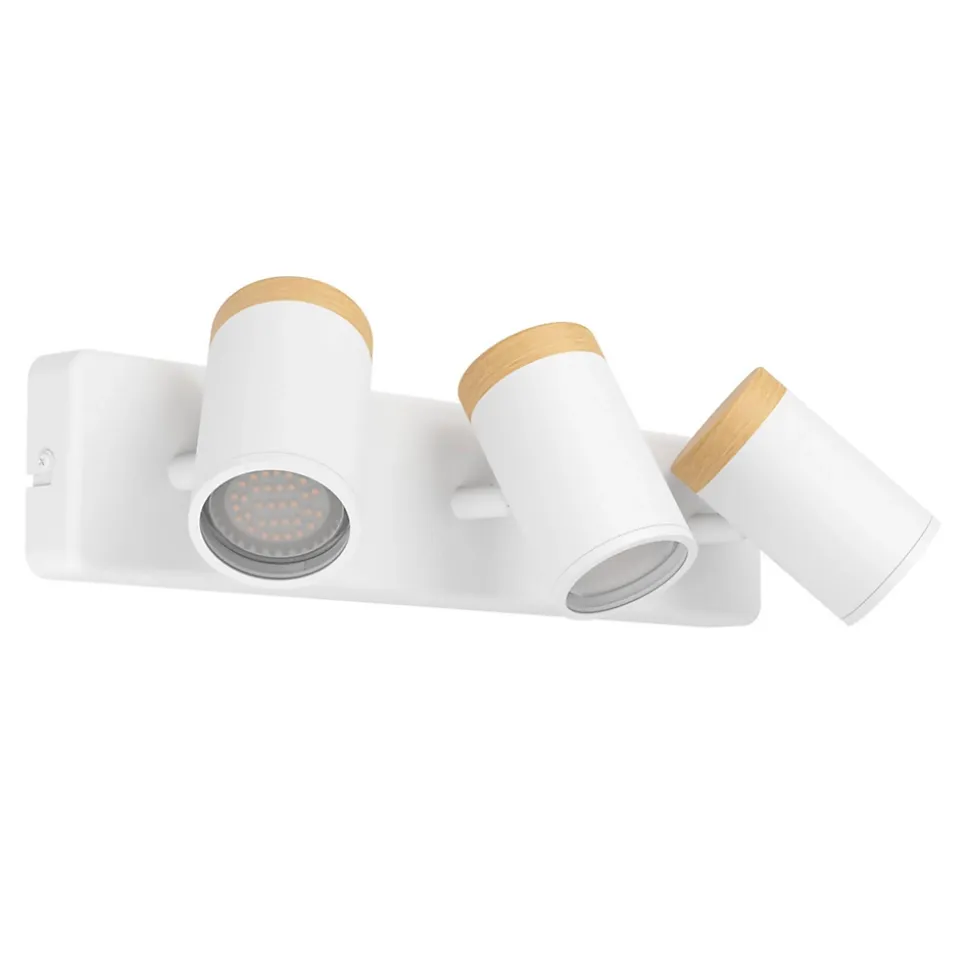 Envie d’une touche de lumière supplémentaire dans votre salle de bain ? Optez pour la solution Consuma. La barre de trois spots de salle de bain Consuma est composé d’un socle et de trois spots en acier noir. Sur chaque spot, un détail de bois viendra faire toute la différence dans votre décoration intérieure. Cette applique murale, ou plafonnier, sera parfaite pour vos salles d’eau, grâce à sa protection IP44, elle ne craint ni les éclaboussures ni la poussière. Pour vous permettre d’illuminer précisément l’endroit qui vous est utile, chaque spot est orientable. Plus de confort au quotidien et pour être sûr d’avoir de la lumière là où vous en avez réellement besoin. Pour en profiter pleinement, ajoutez une ampoule GU10 de votre choix, pour un rendu des couleurs naturel, optez pour du blanc neutre, 3000k minimum. Pour une salle de bain à la fois chic et tendance, la série Consuma sera parfaite.