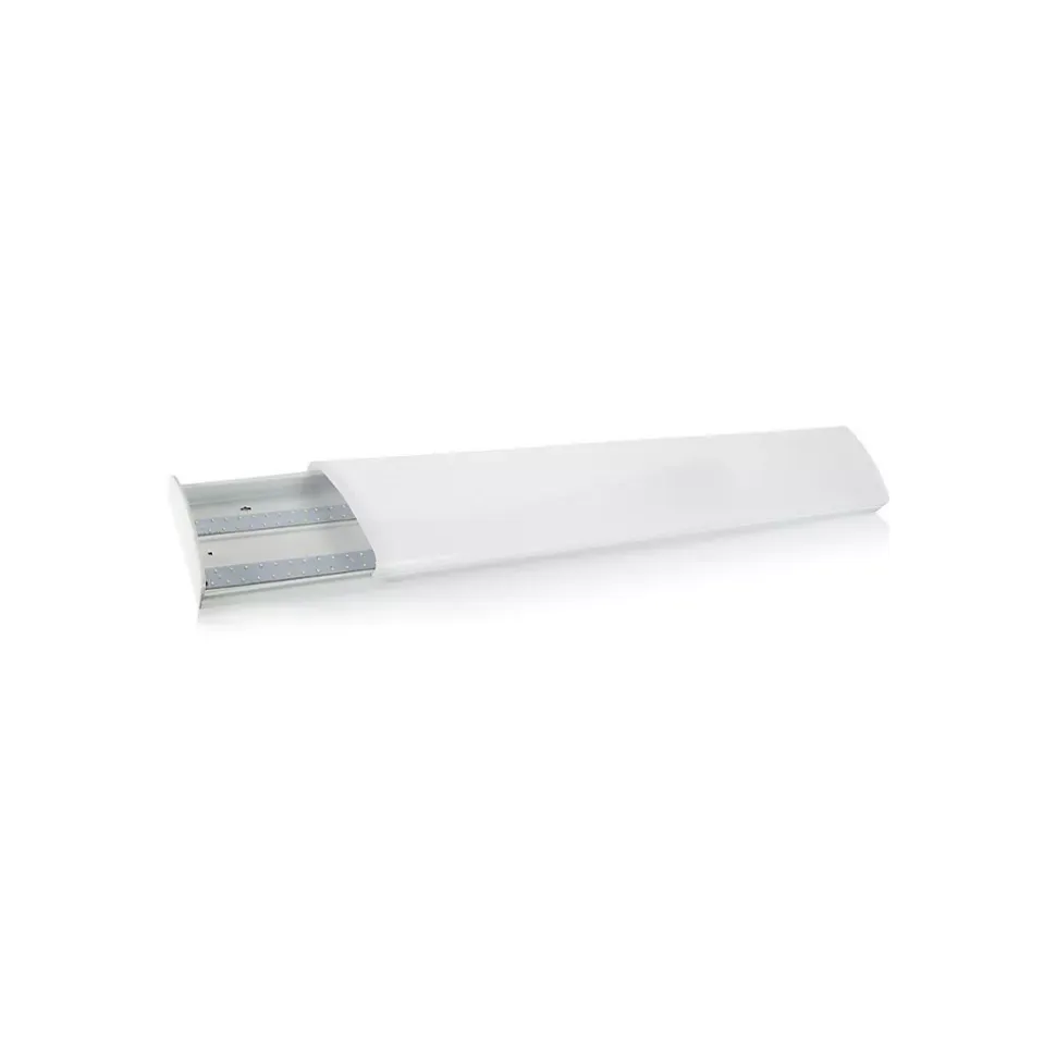 La réglette LED polycarbonate K-LED 18W ASLO est facile à installer. Elle offre un éclairage de haute qualité dans des environnements nécessitants beaucoup de lumière, tels que les bureaux. 4000K est un blanc brillant ou blanc neutre. Cette lumière est souvent utilisée dans les bureaux, les salles d’exposition, les salons de coiffure, les salons de beauté, les cuisines et les écoles. Une lumière blanche brillante maintient les gens actifs et alertes et convient donc parfaitement à l’éclairage de travail.Avec un design minimaliste, moderne et sophistiqué, cette réglette est idéale pour fournir un éclairage uniforme. Fonctionnelle , elle offre un éclairage de haute efficacité et une consommation énergétique réduite.L’éclairage LED est une technologie ayant des caractéristiques prometteuses et innovantes en termes d’efficacité énergétique avec avantages évidents pour l’environnement. Aujourd’hui, les équipements ASLO vous offre l’opportunité de réduire la consommation d’énergie à 50% ainsi que la réduction des émissions de CO2. Tout cela en minimisant les coûts et en offrant une efficacité maximale en ce qui concerne l’éclairage.Caractéristiques : Dimensions : 615 x 50x 160mm.Puissance 18W.Tension 230V. 50/60Hz.Lumens 1440.4000 K : Éclairage Blanc neutre.Angle d’ouverture 120°.Corps en aluminium.Diffuseur en polycarbonate.Couleur blanc.Puce LED 2853 SMD.Utilisation : 25 000h. Nombre de cycles (marche/arrêt) 20 000.Utilisation intérieure.Emplacement Plafond / Mur.Normes CE/RoHS. IP30.Poids 0.83kg.