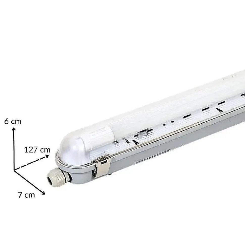 [Éclairage fiable] La réglette étanche de 120 cm est conçue pour offrir un éclairage efficace dans les environnements industriels et commerciaux, garantissant une lumière de qualité pour les garages, usines et grands espaces.[Installation facile] Grâce à son design ergonomique et compact, l’installation de la réglette est simplifiée. Fixez-la simplement à l’emplacement souhaité, insérez le tube LED T8, et branchez-la sur une alimentation en 220V-240V.[Grands espaces] Idéale pour les environnements nécessitant une lumière puissante, cette réglette s’adapte parfaitement aux garages, ateliers, usines, et entrepôts, tout en étant adaptée à une utilisation extérieure abritée.[Personnalisation avec Tube T8] Choisissez parmi notre gamme de tubes LED T8 pour maximiser les performances de votre installation, garantissant un éclairage optimal et durable.[Service client et garantie] Profitez de produits certifiés CE & RoHS, garantis 2 ans, avec un service client disponible pour vous conseiller et répondre à vos questions, assurant un achat en toute sérénité.- [Éclairage fiable] La réglette étanche de 120 cm est conçue pour offrir un éclairage efficace dans les environnements industriels et commerciaux, garantissant une lumière de qualité pour les garages, usines et grands espaces.