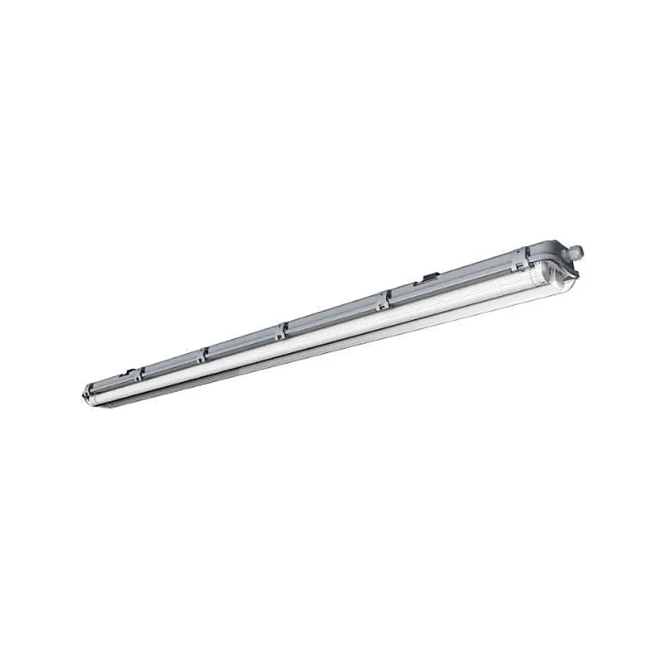 Réglette étanche IP65 120 cm pour 1 tube LED T8 (boîtier vide) : la base de relamping idéale en locaux humides/poussiéreux, compatible tube unilatéral, pour sécuriser l’étanchéité et diviser typiquement la conso vs fluo 36W (selon tube).Confort visuel & éclairage homogène avec la réglette étanche 120 cm (T8 + 180°)Cette réglette LED étanche 120 cm vous laisse prescrire le tube LED T8 120 cm selon le besoin (Kelvin, flux, usage), tout en assurant une diffusion large : angle 180° (selon le tube installé) pour éviter les zones d’ombre sur plans de travail et circulations. Le Ra 80 est également lié au tube choisi, ce qui vous permet de standardiser le support IP65 et d’ajuster le rendu lumière par simple sélection de tube.Pose rapide & câblage sécurisé : réglette IP65 120 cm en saillie (alimentation 1 côté)Pensée pour le terrain, la réglette LED T8 IP65 120 cm (boîtier vide) se pose en saillie et se fixe rapidement (clips de montage). Raccordement direct 220-240V AC, et surtout alimentation unilatérale : vous câblez d’un seul côté, ce qui réduit les erreurs et accélère les relampings en série dans garages, caves, locaux techniques ou ateliers.Performance & ROI : boîtier vide 120 cm optimisé pour tube LED 18-20W (10-12 m²)Avec un tube LED 120 cm généralement 18 à 20W, cette réglette permet d’éclairer typiquement 10 à 12 m² (selon implantation et tube). En rénovation, le gain est immédiat face à un ancien fluorescent 120 cm (≈36W + pertes ballast) : à flux comparable, la baisse de puissance installée améliore votre ROI et réduit l’échauffement, tout en gardant une maintenance simplifiée (tube remplaçable).Durabilité & normes : réglette étanche 120 cm IP65 (PVC) – maintenance réduite + sécurité 220VIndice IP65 (poussières + projections d’eau), boîtier PVC blanc, fonctionnement -20°C à +40°C, durée de vie es