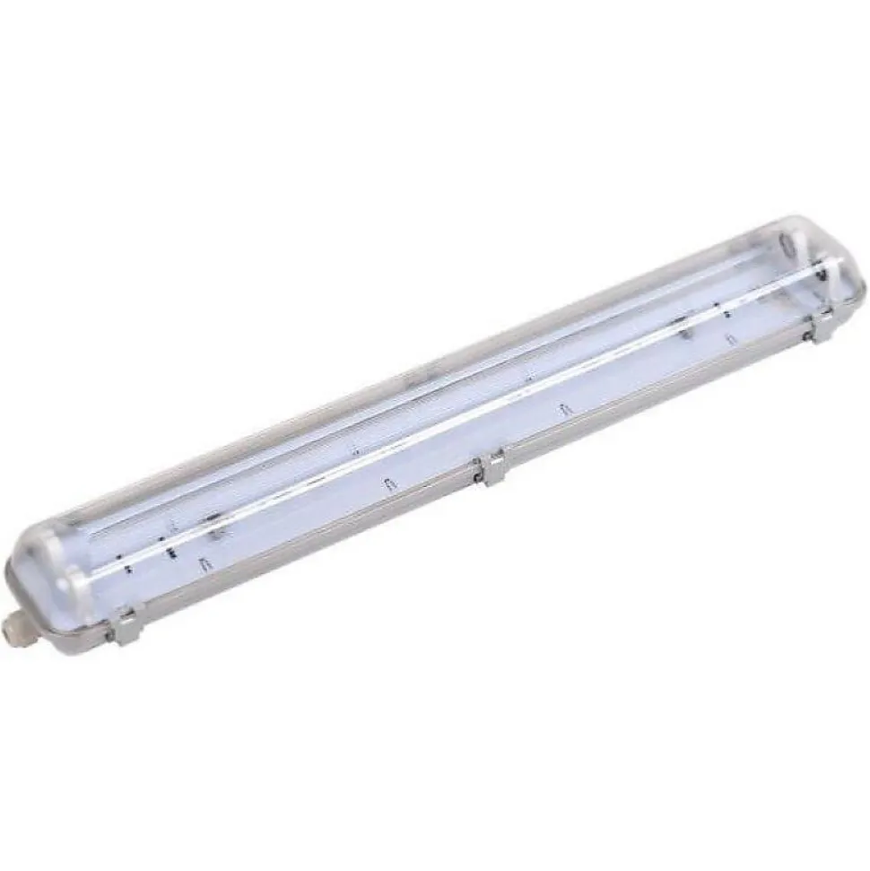 [Réglette étanche double pour tube LED T8 150cm IP65 (boitier vide)] Utilisez notre Réglette LED étanche double pour Tube LED T8 150cm IP65 (boitier vide) avec deux tubes T8 150cm dotés d’une alimentation latérale.[Un boîtier double et résistant] Cette Réglette LED double est à la fois un support pour vos tubes LED 150cm et une protection contre l’humidité et les chocs. En effet, du fait de son indice de protection IP65, elle bénéficie d’une grande solidité et d’une grande résistance face aux éléments extérieurs. [Une gamme pensée pour vos besoins] Cette réglette peut être utilisée aussi bien en intérieur qu’en extérieur. Sur des plafonds ou des murs, ce boîtier s’adapte à votre utilisation.[ATTENTION] Le Tube LED T8 n’est PAS inclus. L’alimentation se fait sur un côté du tube néon. [La qualité Silamp] Silamp s’engage pour vous fournir des produits de qualité et garantis 2 ans, ainsi qu’un service client à l’écoute et réactif.- [Réglette étanche double pour tube LED T8 150cm IP65 (boitier vide)] Utilisez notre Réglette LED étanche double pour Tube LED T8 150cm IP65 (boitier vide) avec deux tubes T8 150cm dotés d’une alimentation latérale.