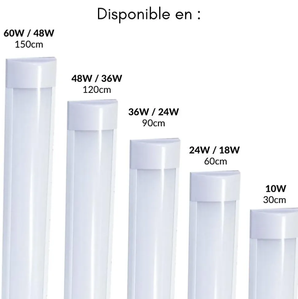 Pack de 4 réglettes LED 150cm 48W – Un éclairage puissant et fonctionnelOptez pour une solution d’éclairage performante avec ce pack de 4 réglettes LED 150cm 48W. Grâce à leur design léger et épuré, ces luminaires offrent une installation facile et un éclairage puissant, idéal pour illuminer efficacement de vastes espaces. Que ce soit pour des parkings, sous-sols ou espaces de stockage, ces réglettes garantissent une luminosité optimale avec un branchement direct en 220V.Les caractéristiques du pack de 4 réglettes LED 150cm 48W✔ Puissance lumineuse élevée : 48W par réglette pour une diffusion large et homogène de la lumière.✔ Installation simplifiée : fixation rapide au plafond grâce aux supports inclus.✔ Branchement direct 220V : pas besoin de matériel supplémentaire, tout est fourni.✔ Design léger et discret : idéal pour un éclairage efficace sans encombrer l’espace.✔ Remplacement idéal des anciens tubes fluorescents : ces réglettes LED 150cm sont une alternative plus moderne et performante.Pourquoi choisir ce pack de 4 réglettes LED 150cm 48W ?Grâce à leur forte intensité lumineuse et leur faible consommation, ces réglettes sont idéales pour des espaces nécessitant un éclairage constant et efficace. Elles garantissent une diffusion homogène de la lumière, sans scintillement, tout en permettant une installation rapide grâce aux supports fournis.Comment installer vos réglettes LED 150cm 48W ?L’installation est rapide et simple :✔ Fixez les supports de fixation au plafond ou au mur.✔ Branchez directement les réglettes au courant 220V.✔ Clipsez les réglettes sur leurs supports pour une fixation sécurisée.Où utiliser ces réglettes LED 150cm 48W ?Avec leur haute intensité lumineuse, ces réglettes sont adaptées à divers environnements 😕 Locaux profess