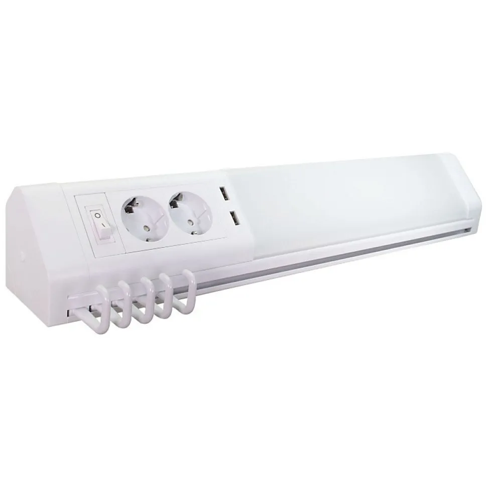 Les caractéristiques techniquesLa réglette Led Carvo de Tibelec peut être installée dans une cuisine ou une salle de bain en applique murale.Elle intègre une technologie Led basse consommation.Elle possède un interrupteur on/off .Elle est équipée de 2 prises électriques, 2 ports USB et crochets de suspension.Les avantages esthétiquesAvec son design en plastique blanc, cette réglette Carvo de Tibelec est idéale pour optimiser les petits espaces style studio ou logement étudiant.Son éclairage blanc neutre et ses 1000 lumens vous procureront une lumière efficace et dynamisante.Elle est équipée de 2 prises de courant vous permettant de brancher appareils électro-ménagers ou rasoirs, 2 ports USB pour recharger votre portable ou tablette et 5 crochets pour pendre torchons ou spatules dans une kilchenette ou gant ou serviette dans une salle d’eau.