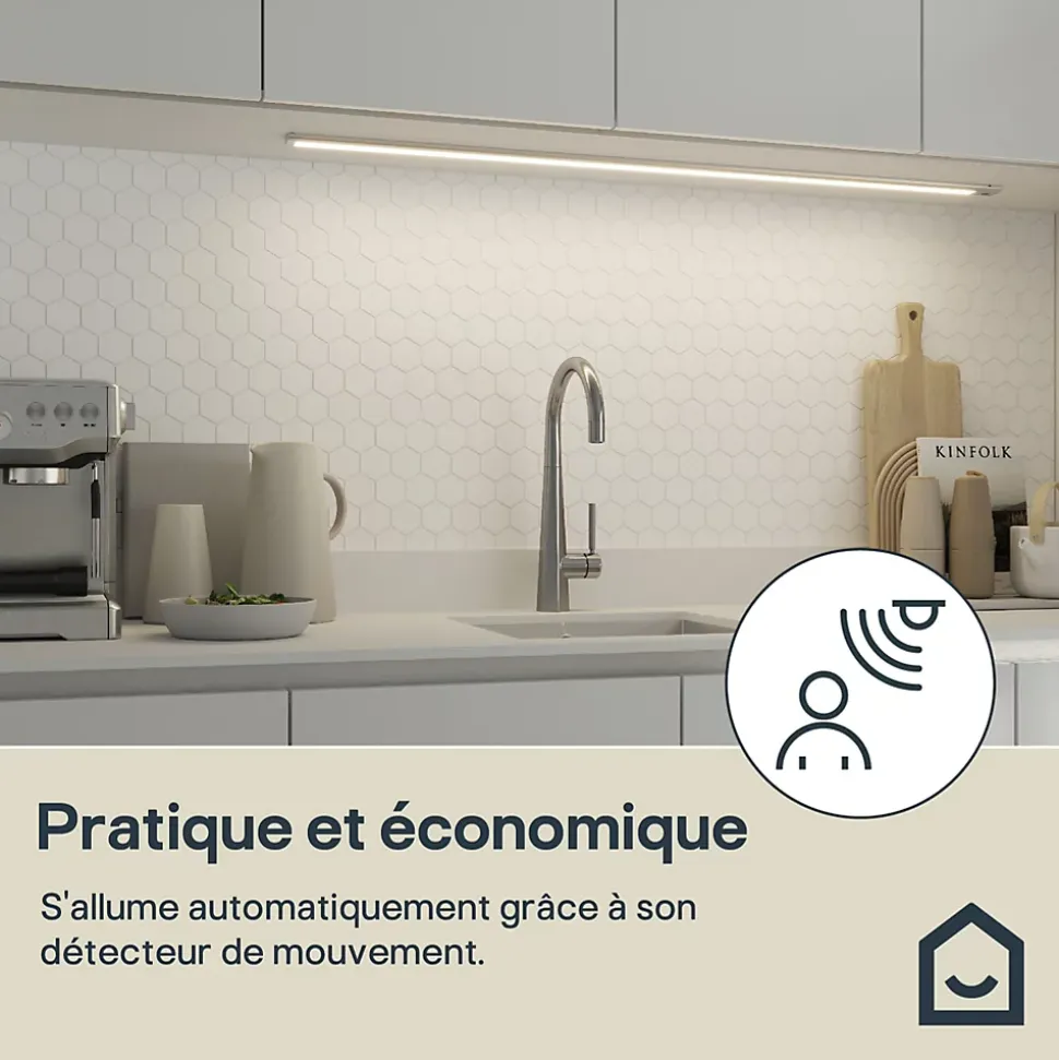 Réglette sous meuble à détection Menezes LED intégrée blanc neutre IP20 1200lm 20W L.118,5xl.4,2xH.1cm chrome GoodHome