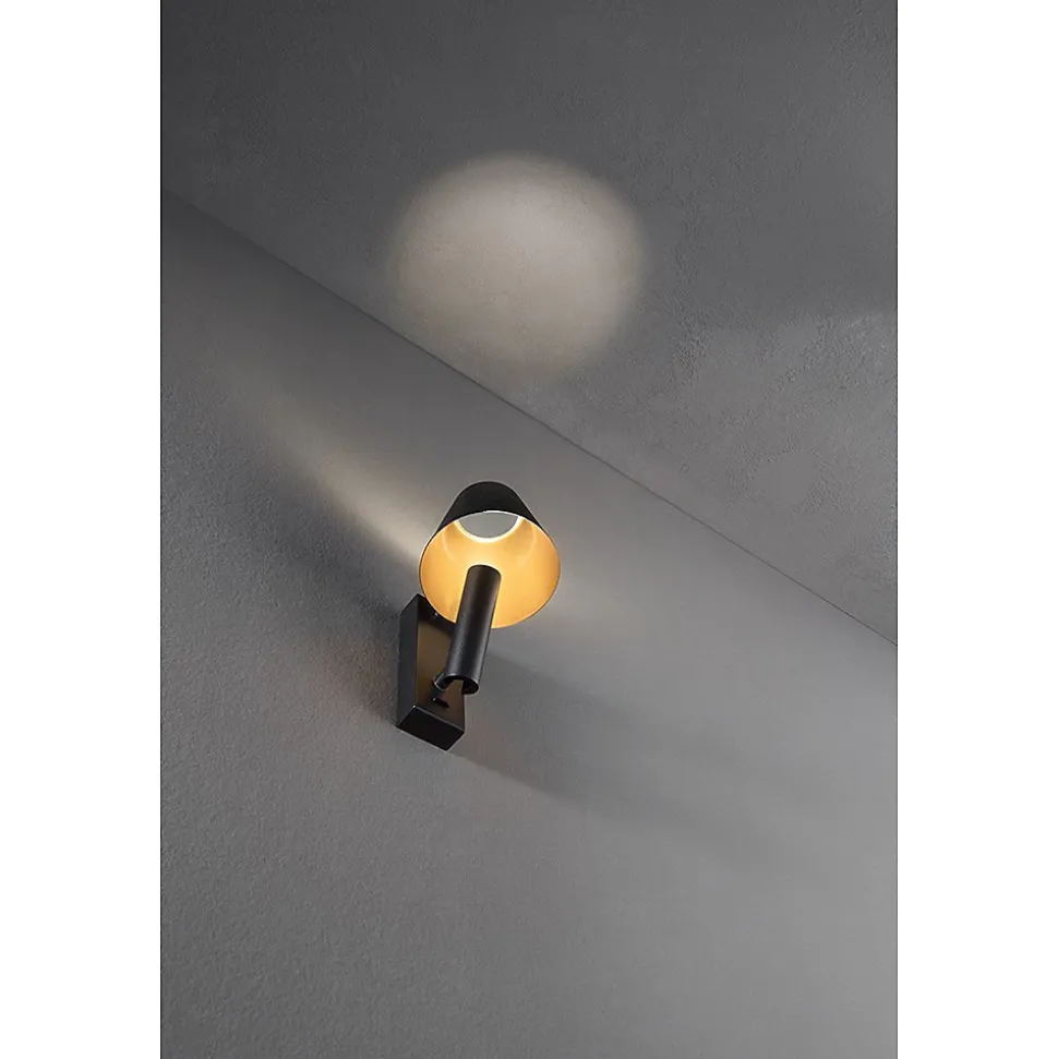Le cadre en métal thermolaqué et aluminium, présenté ici en finition blanc mat, est complété par un diffuseur conique associé à un spot orientable à 340° doté d’une grille nid d’abeille anti-éblouissement.La lumière peut être dirigée directement vers l’abat-jour, créant un éclairage doux et confortable, idéal pour les chambres, les coins lecture ou les espaces détente. Le module LED 6W intégré génère une lumière chaude de 3 000 K avec un IRC ≥ 90, garantissant un excellent rendu des couleurs et une luminosité réelle de 480 lumens.L’interrupteur marche/arrêt est idéalement situé sur la base de la lampe, pour une utilisation pratique et immédiate. Avec une durée de vie de 40 000 heures et un design minimaliste mais soigné, REVERSO est la solution idéale pour les espaces modernes où la lumière est également un élément décoratif.Puissance LED : 6 WTempérature de couleur : 3 000 KFlux lumineux : 480 lm (produit)IRC ≥ 90 | LED avec une durée de vie de 40 000 heuresCorps lumineux orientable à 340°Spot avec grille alvéolée anti-éblouissanteInterrupteur marche/arrêt intégré au piedMatériaux : Aluminium et métal thermolaquéDimensions de l’applique : P 16 × H 22 cmAbat-jour : Ø 12 × H 10 cmSpot : Ø 3 × L 11 cmClasse I | IP20 | Tension : 220-240 V 50/60 HzParfaite comme lampe de lecture murale ou de chevet, REVERSO allie une technologie d’éclairage de précision à une esthétique épurée, pour des espaces où forme et fonction cohabitent harmonieusement