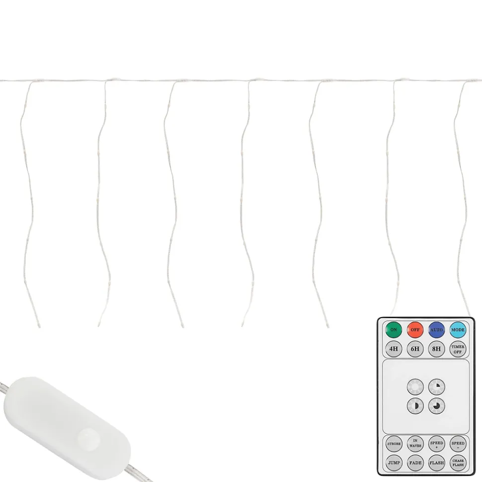 Cette guirlande lumineuse LED crée une ambiance chaleureuse grâce à sa lumière blanche chaude, que ce soit pour Noël, les fêtes, les mariages ou simplement pour décorer une pièce. Avec un total de 240 LED réparties sur 40 fils sur une largeur de 6 mètres, elle crée un éclairage élégant. La télécommande fournie permet non seulement de choisir parmi 19 modes d’éclairage différents, mais aussi de contrôler facilement la fonction minuterie avec une durée de 4, 6 ou 8 heures. Idéal pour les fenêtres, les murs, les balcons ou comme éclairage d’arrière-plan à l’intérieur. Livraison:1x Guirlande lumineuse LED (240 LED)1x Télécommande Information technique:Couleur de la lumière: blanc chaudNombre de LED: 240 LED (réparties sur 40 fils – espacement de 15 cm)Longueur: 600 cm (largeur) x 60 cm (hauteur)Minuterie: durée réglable sur 4 h, 6 h ou 8 hModes: 19 programmes d’éclairage différentsCâble: 5 mAlimentation: prise secteurUtilisation: à l’intérieur et à l’extérieur